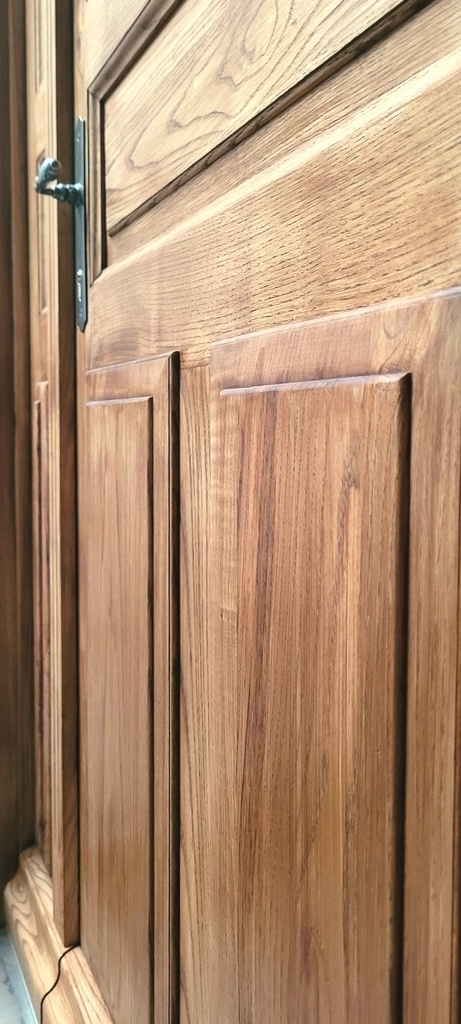 Ici la porte fait 2.35m, j'ai seulement trouver des plateaux de 2.5~2.6m, ça ne donne pas trop d'amplitude... Je crois que les prochaines portes seront en chêne!