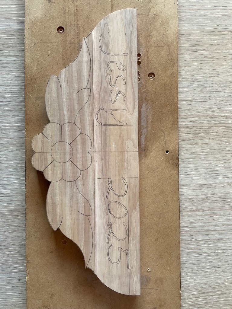 Après chantournage, la pièce est vissée par derrière sur un panneau plus grand, pour pouvoir la maintenir sans être embêté par les valets ou serre-joints.
