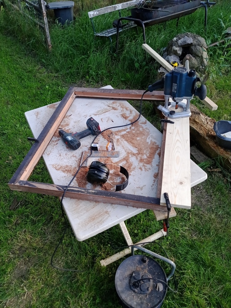 Afin d'accueillir la vitre, les feuillures sont modifiées et approfondies à la défonceuse.