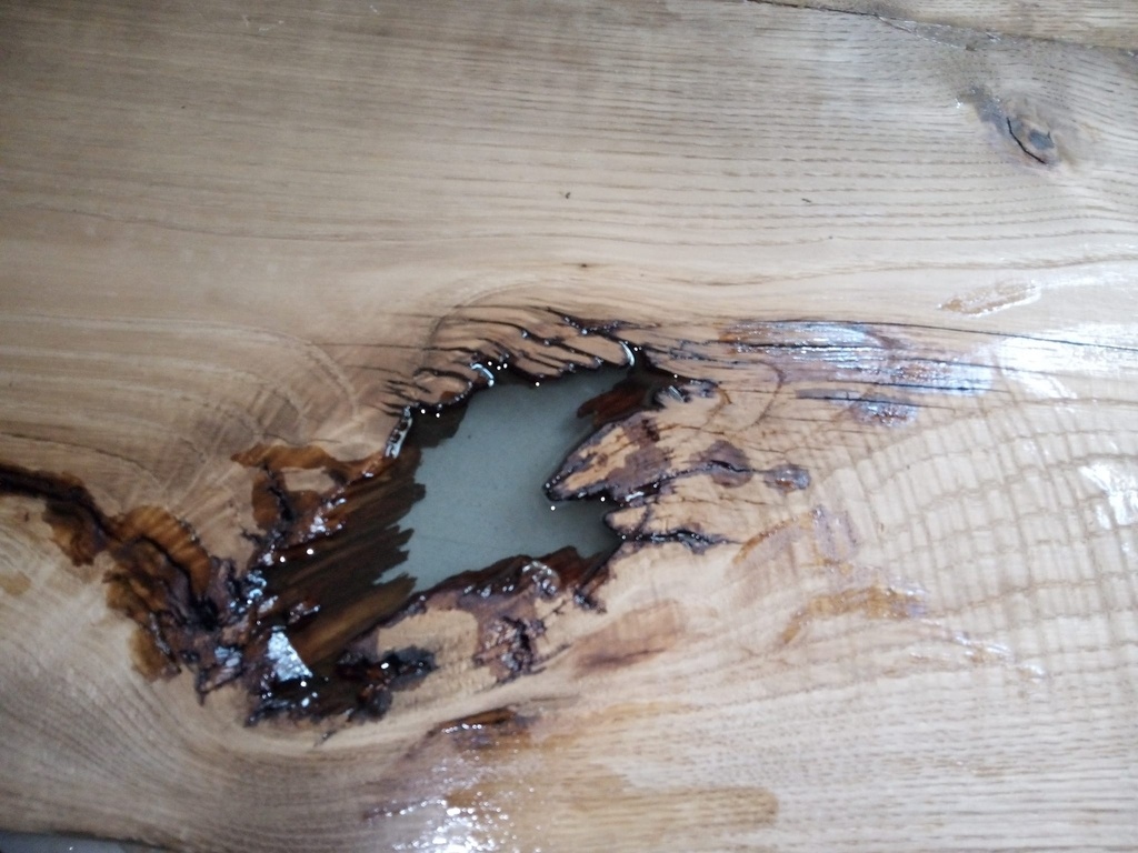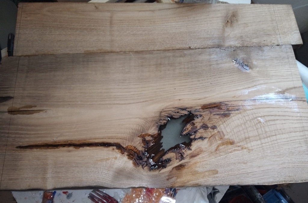 y a un gros nœud qui sera rempli d'epoxy transparente