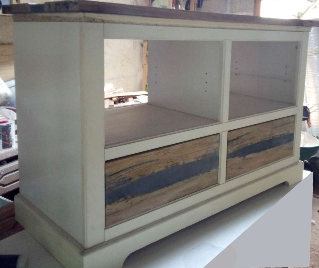 1er opération démontage du meuble.. ponçage égrainage et réparation de la partie cassé.