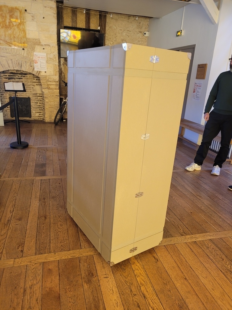 Je vous présente la réalisation d’une armoire mobile en valchromat kaki et finition Rubio