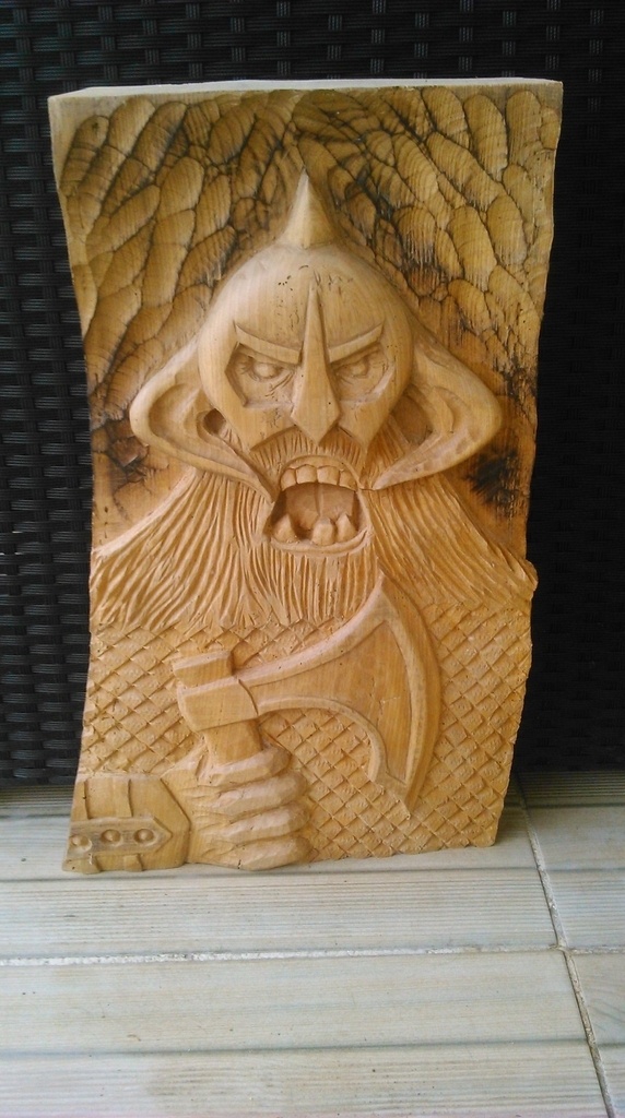C'est pas l'idéal pour les détails et c'est un bois qui a tendance à émousser le tranchant des outils mais j'avais acheté pas cher quelques planches de frêne avec une belle épaisseur, donc ça me permet de mettre pas mal de relief sur du haut-relief. Mais ce bois est plus approprié à des motifs avec de belles courbes et arrondis laissant apparaitre son joli veinage