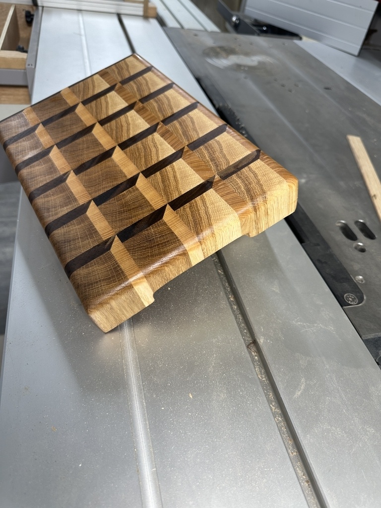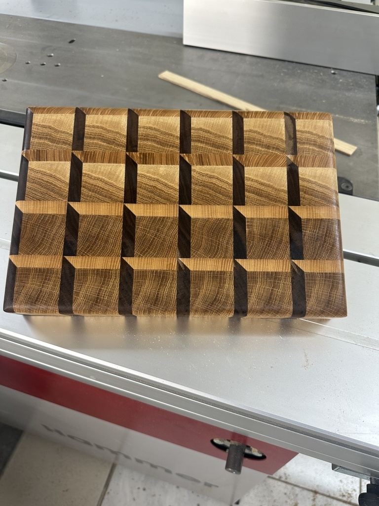 Petite réalisation pour un ami d'une planche à découper en bois de bout. Les dimensions sont de 200x300x40