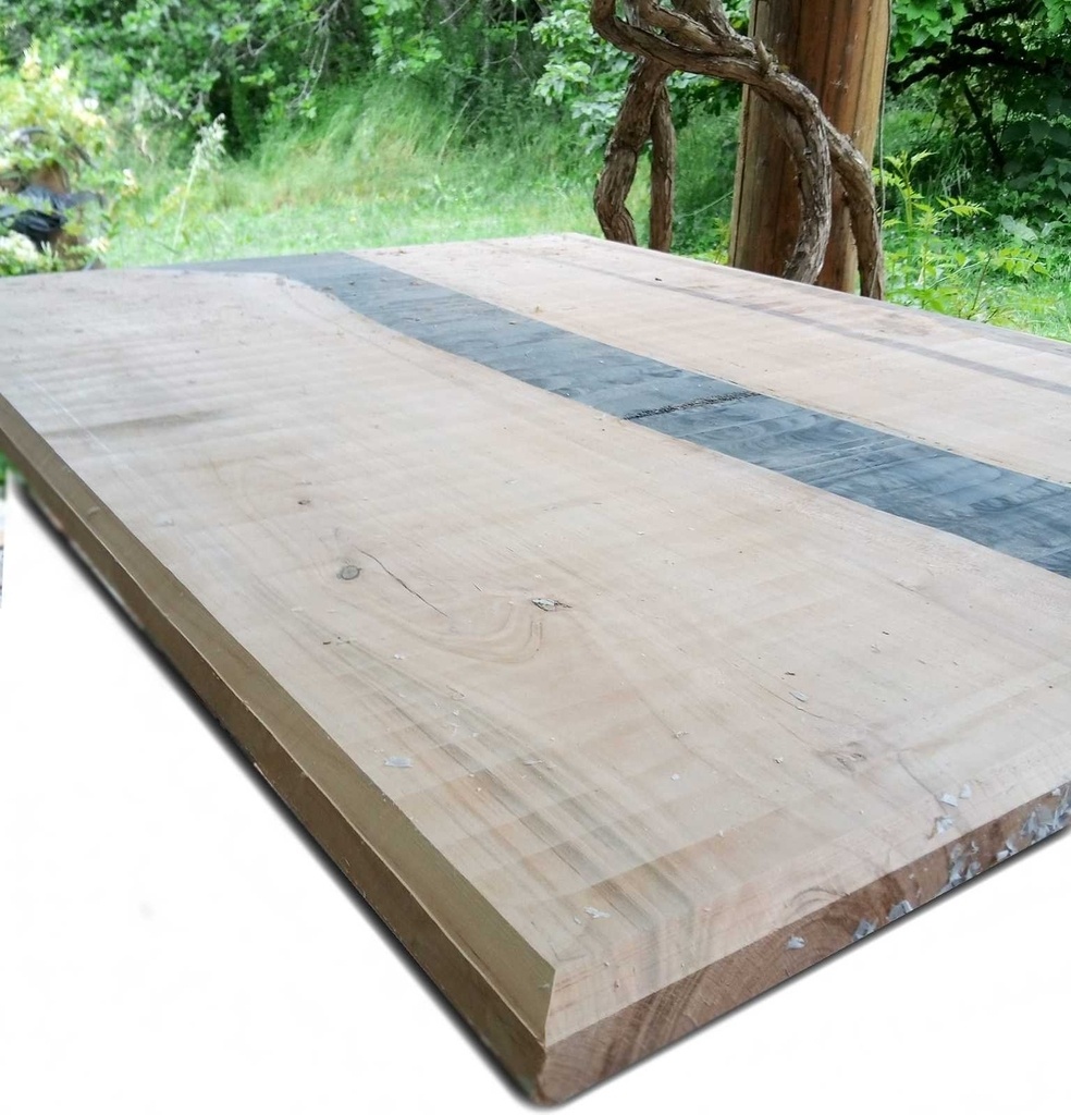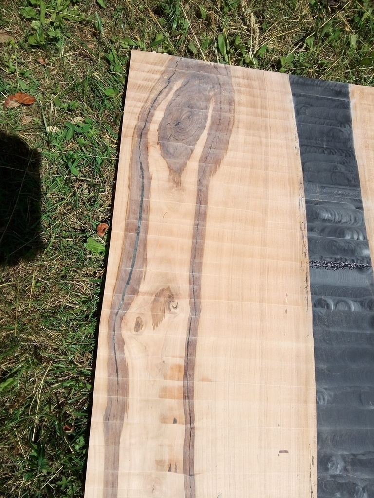 il trouve une planche de noyer que je vais chercher faute de remorque ... elle fait 3 m... je garde les chute .