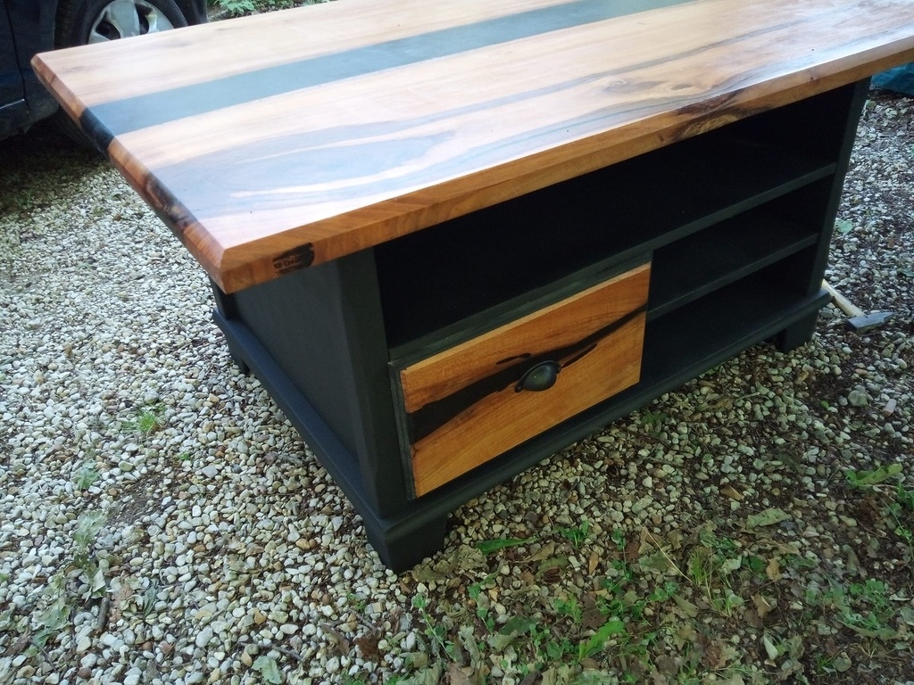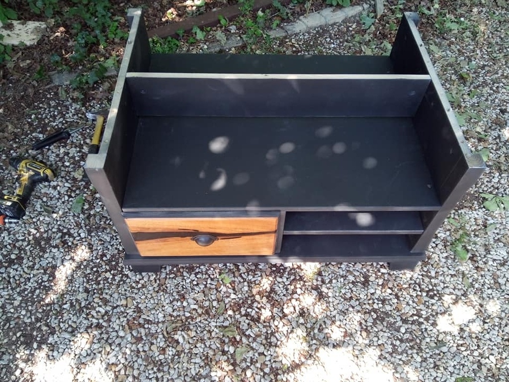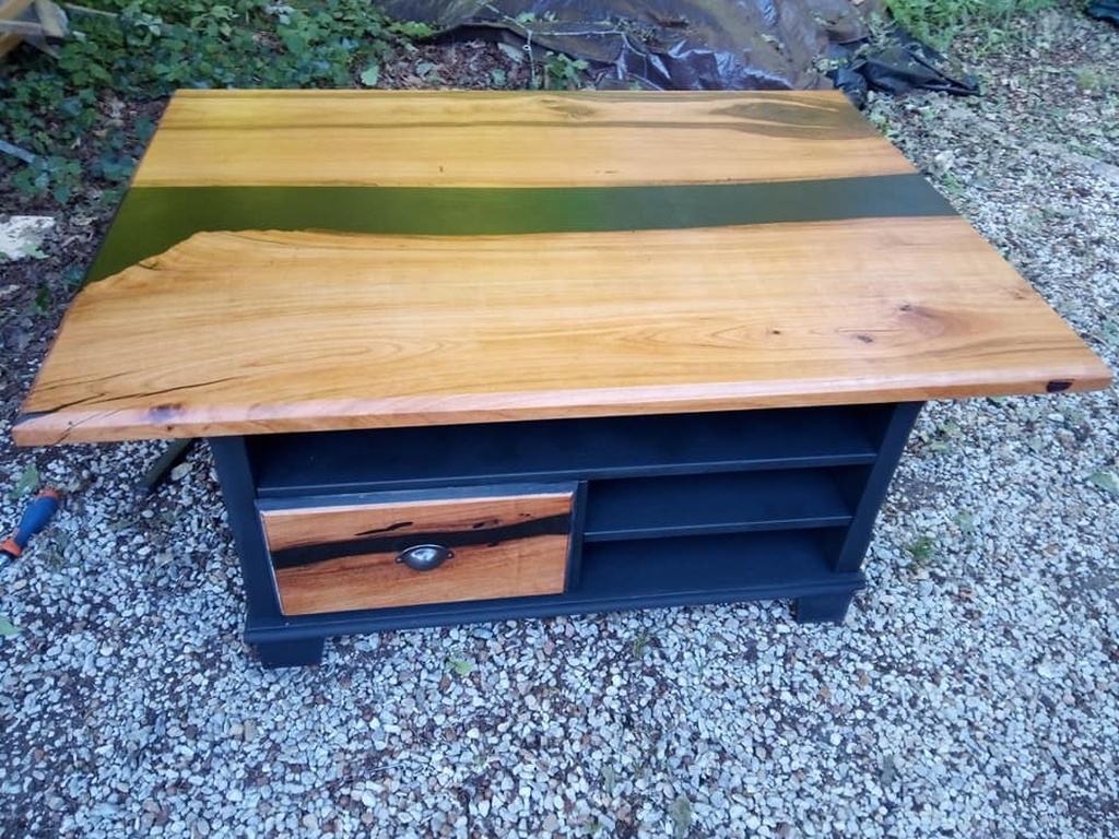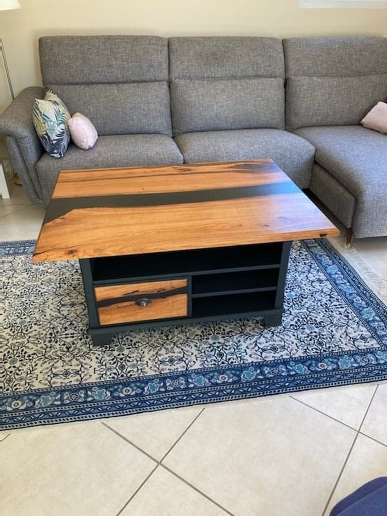 ma copine me dit : noyer et epoxy noir / noir. et meuble noir mat