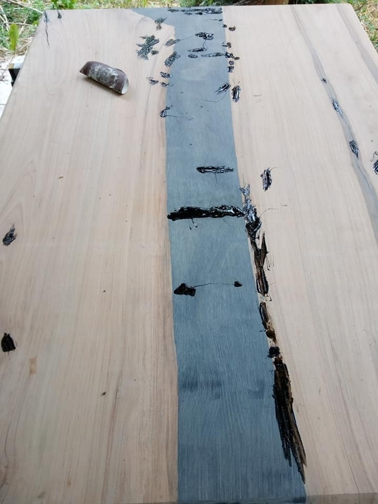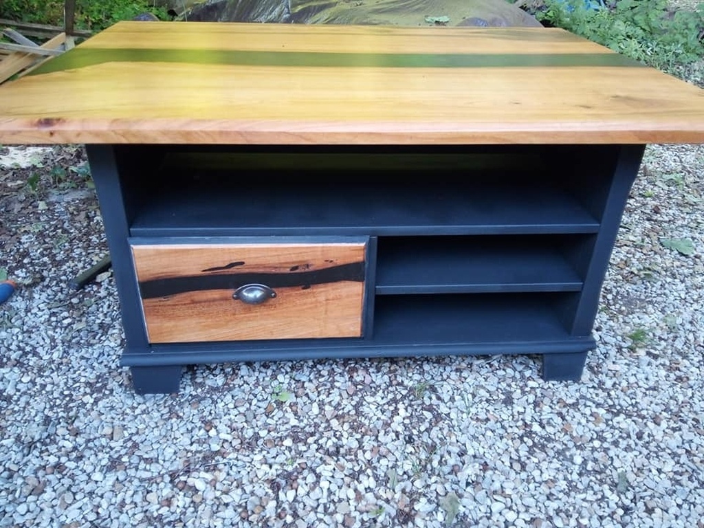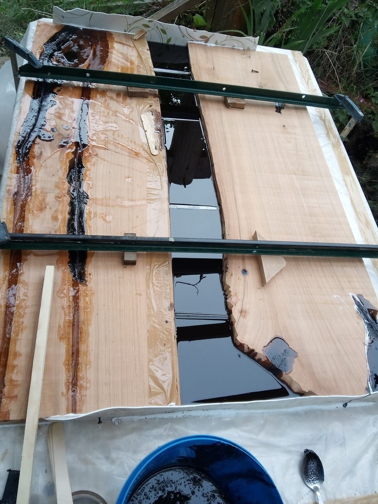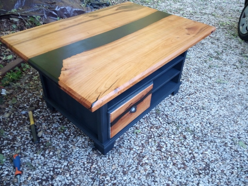 ma copine me dit : noyer et epoxy noir / noir. et meuble noir mat