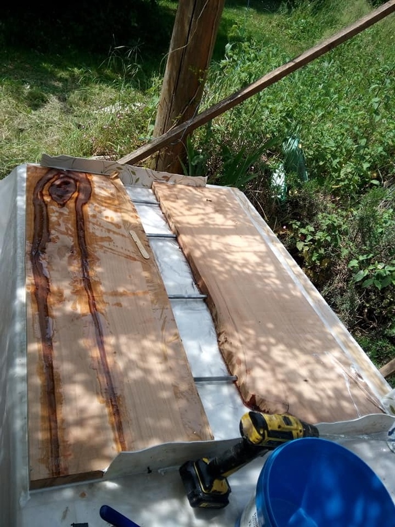 je pose des renforts métallique avec du jeu l’époxy faisant le lien cela m’évite dans mettre dessous, après vu que j'ai décidé plus tard de garde le plateau d’origine, cela n’était pas obligatoire)