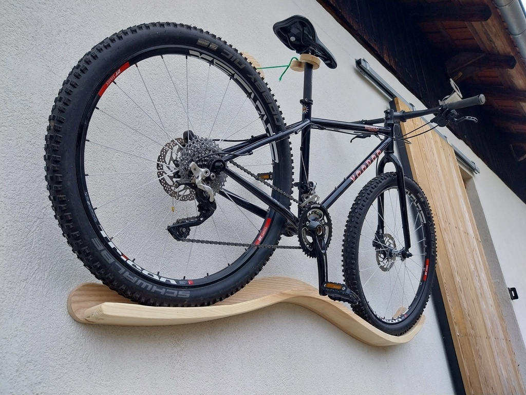 Support qui met en valeur le vélo..... et quelqu'un qui sera curieux sera surpris dans le bon sens du therme par ton support. Ensuite il faut avoir un bon mur d'ancrage... d'ailleurs par curiosité quel est le poids de ton vélo ?.....car il faut tout de meme le porter.