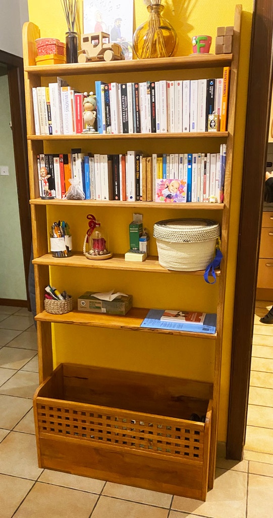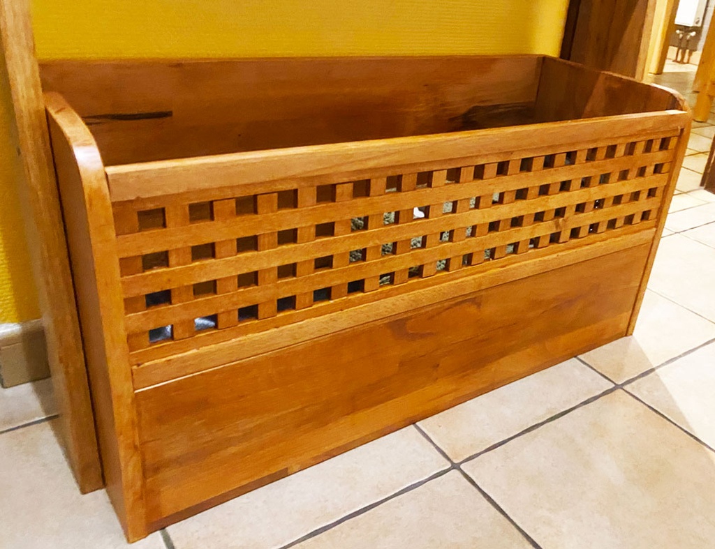 Bonjour à tous ! Alors que j'attends impatiemment le retour du soleil et la poursuite de mon projet d'escalier, j'ai enfin pris la décision de métamorphoser cet affreux meuble d'entrée, conçu à mes balbutiements créatifs. J'ai d'abord imaginé une modélisation en trois dimensions pour soumettre l'idée à l'approbation de mes proches, puis me voilà lancé dans l'aventure ! Cette pièce unique est née de l'alliance du hêtre et du chêne.