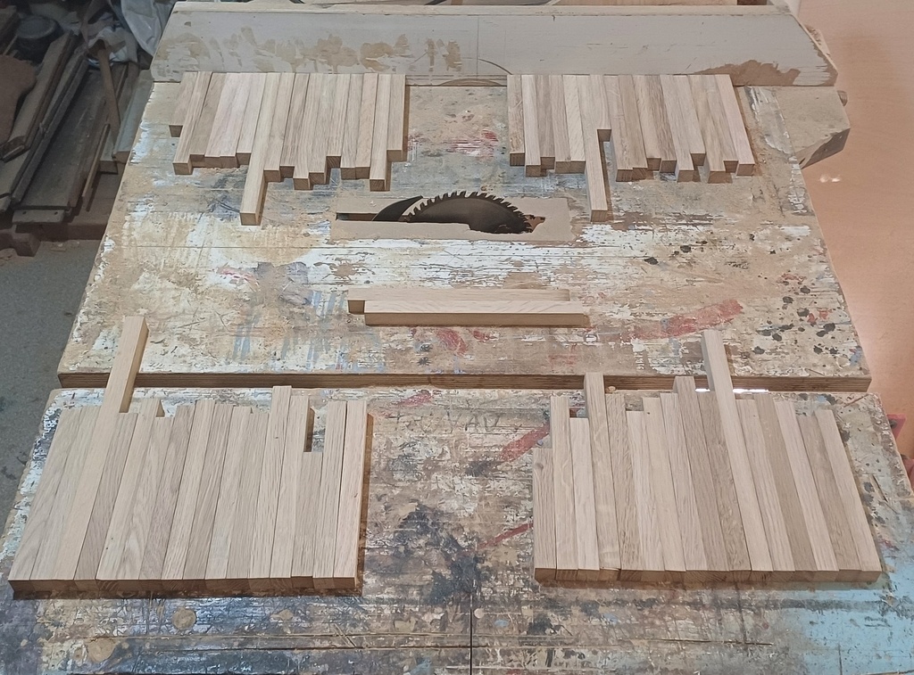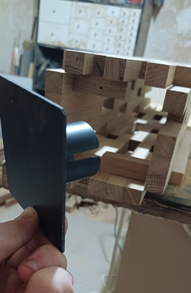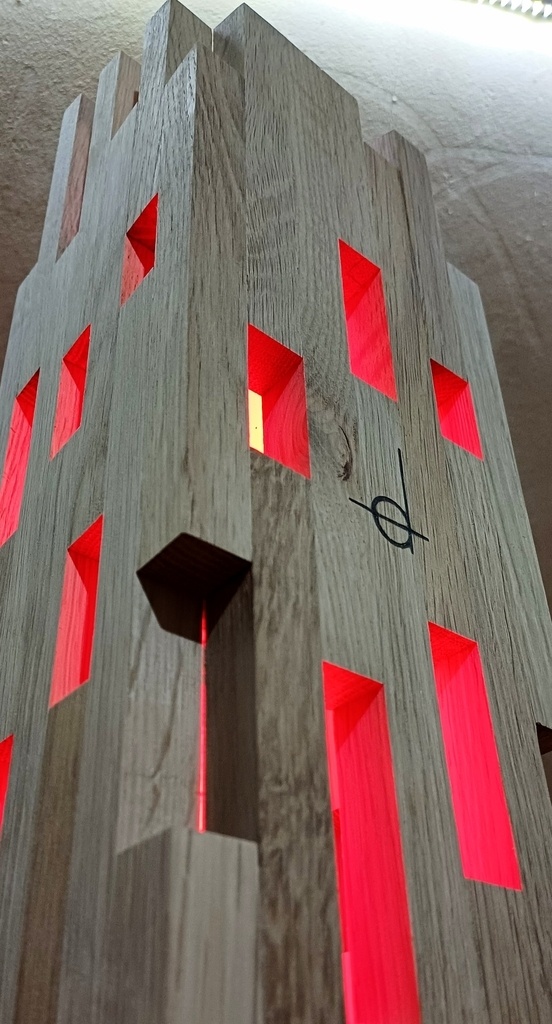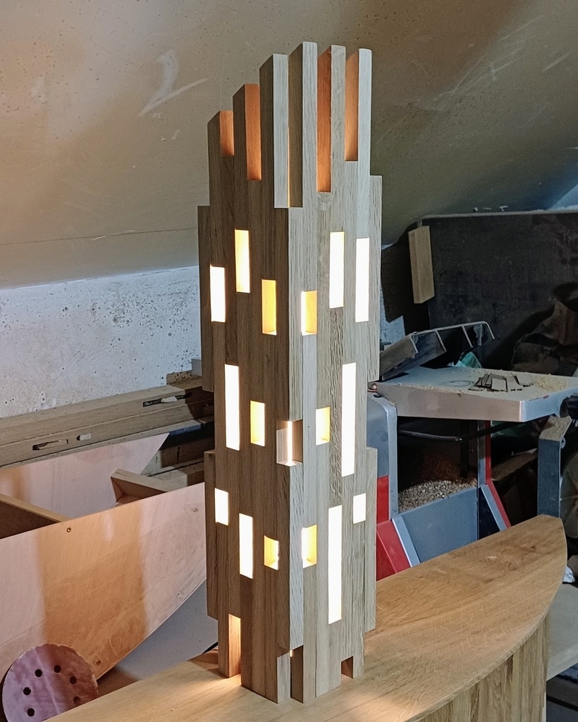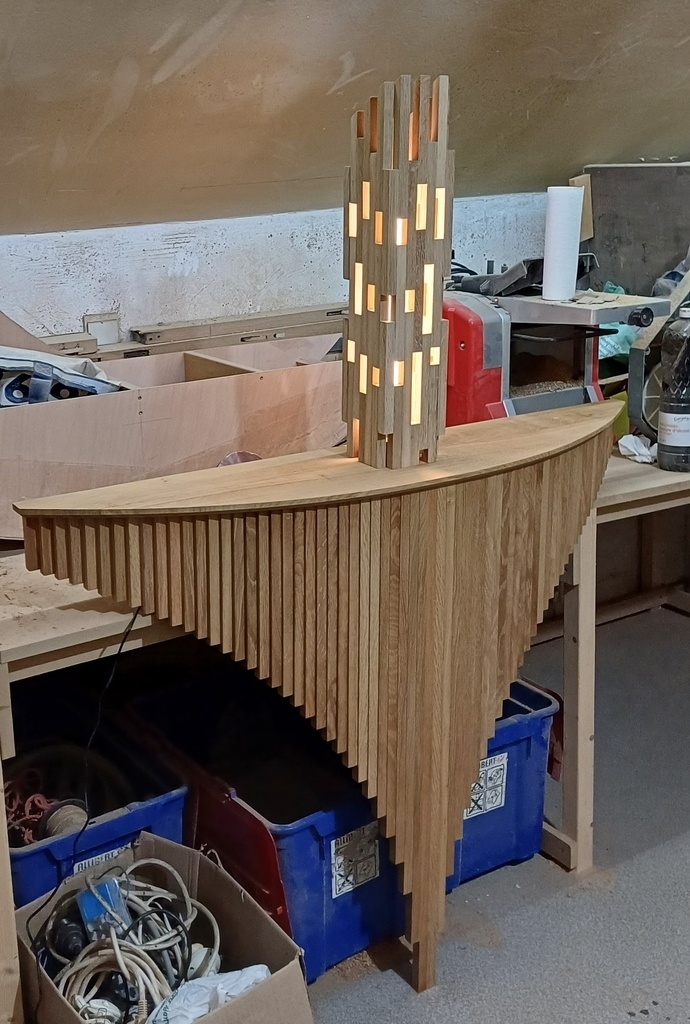 Avec les chutes des carrelets de ma console-orgue, j'ai pu fabriquer cette lampe.