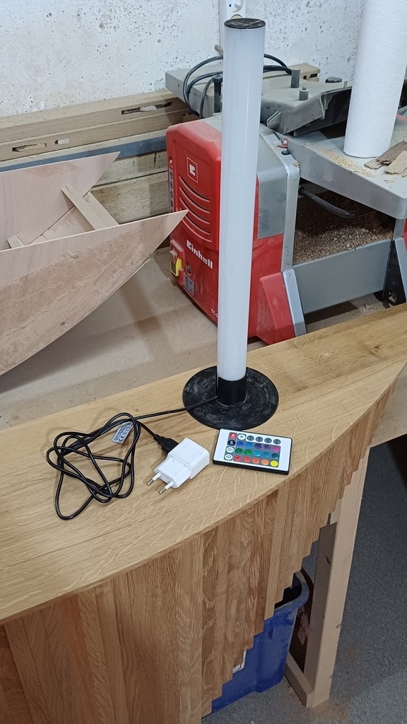 Ensuite j'ai acheté un tube LED pas cher, et découpé l'embase pour qu'elle rentre dans ma lampe.