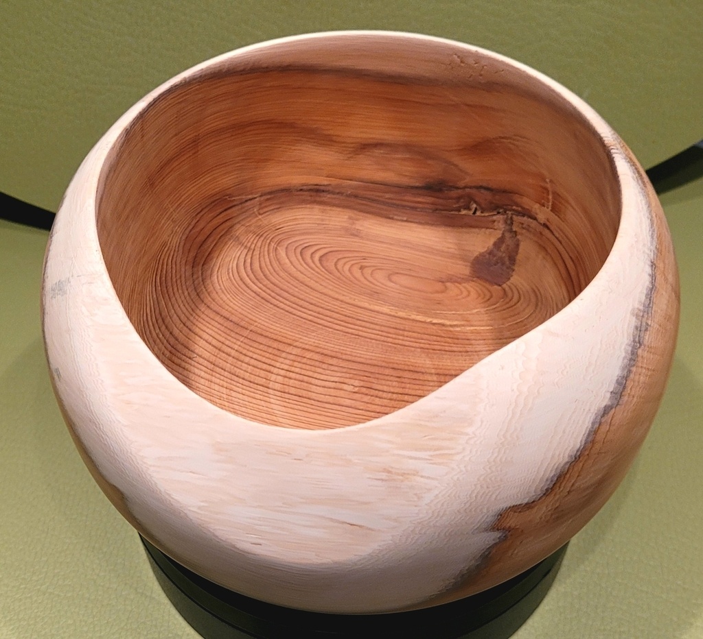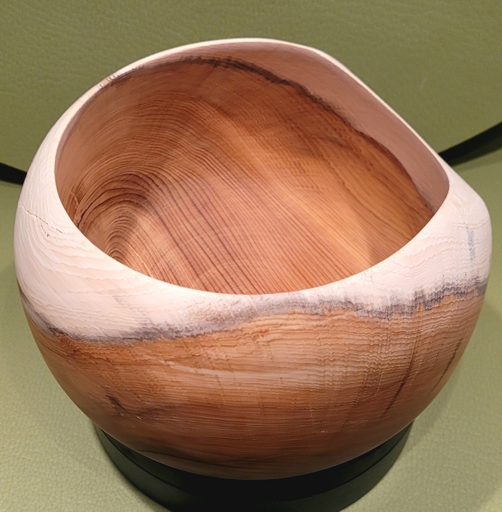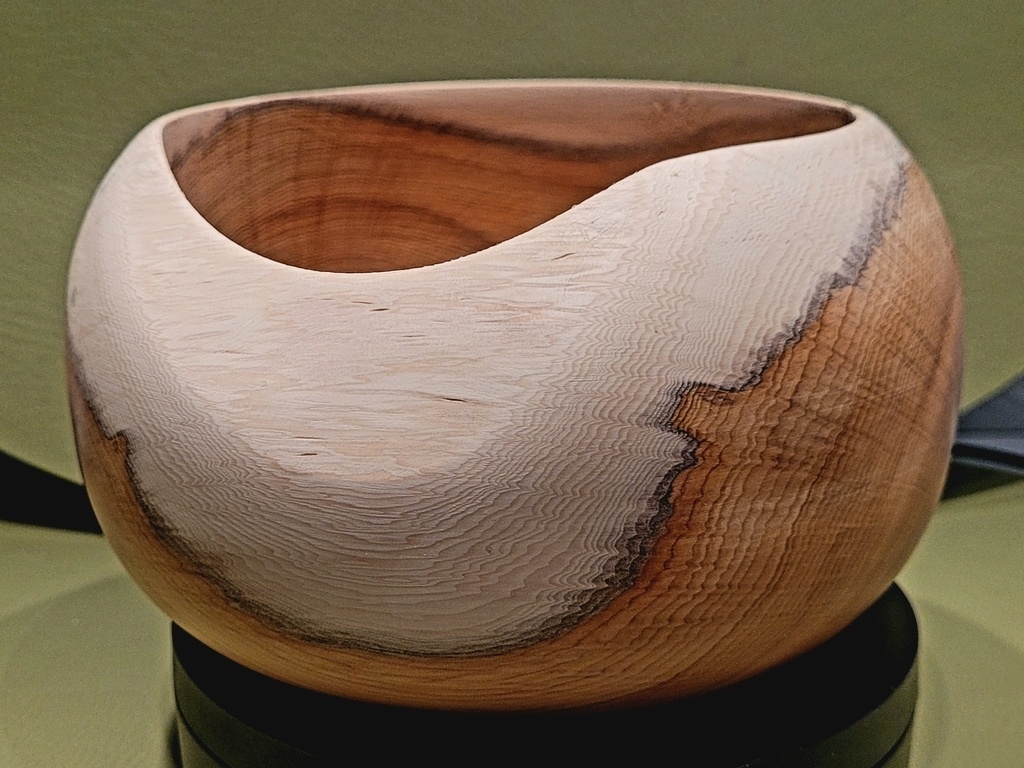 magnifique grain cet if, je crois que c'est la première fois que j'en vois avec cet effet presque ondé... Et j'aime beaucoup le choix d'une forme tout en rondeur, je trouve qu'elle crée un bon équilibre avec les contrastes très marqués du bois.