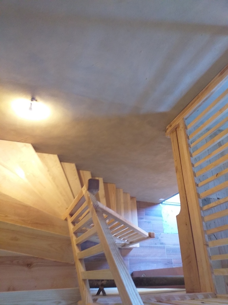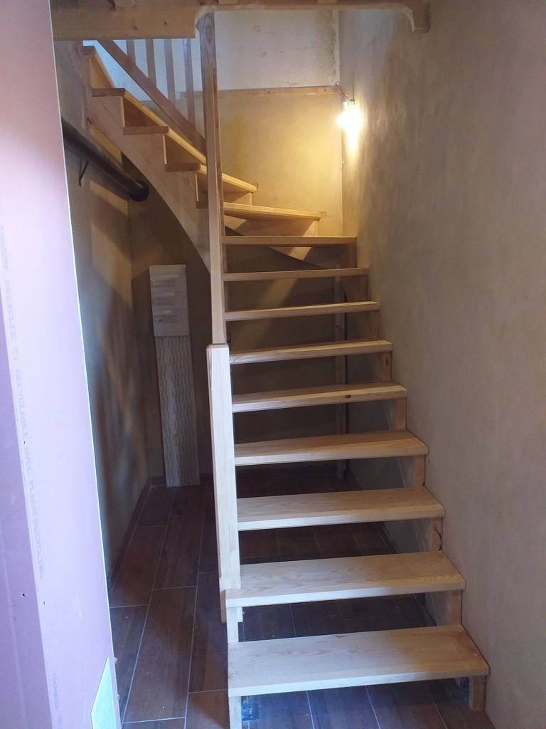 Limon en crémaillère découpe arrondi pour essayer de faire un effet "hélice d'adn" mais vu la petite cage d'escalier sa se voit pas trop.