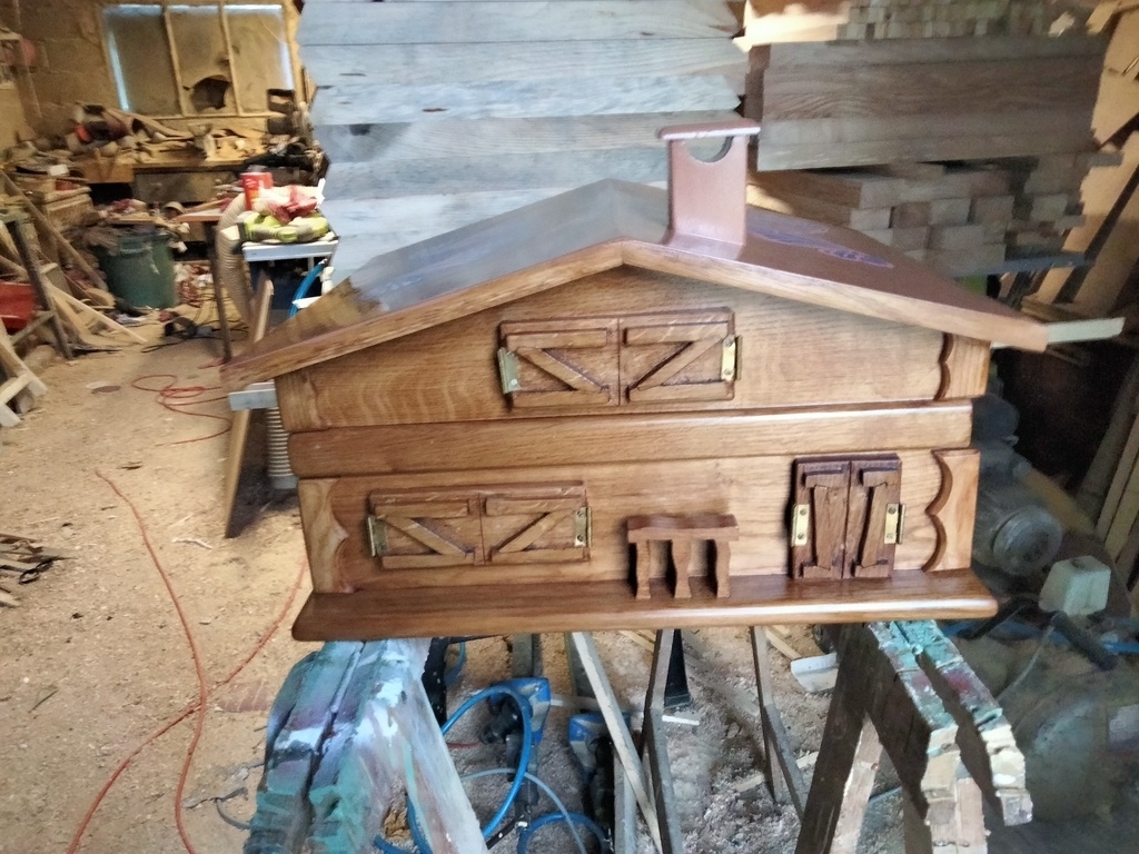 Boîtes aux lettres murale personnalisée. Le tout est en chêne avec charnière piano.