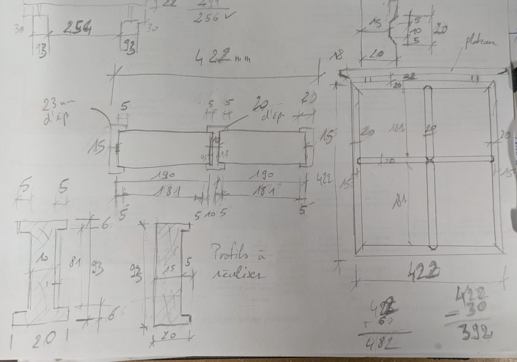 Par mesure de précaution j'ai mis un point de mastic acrylique sur deux coins lors de l'assemblage du cadre. Il faut savoir que ces différents carreaux (récupérés) ont des épaisseurs différentes. Du coup j'ai établi une moyenne pour pouvoir enfiler les différents blocs dans les profils usinés sur la toupie de mon combiné.