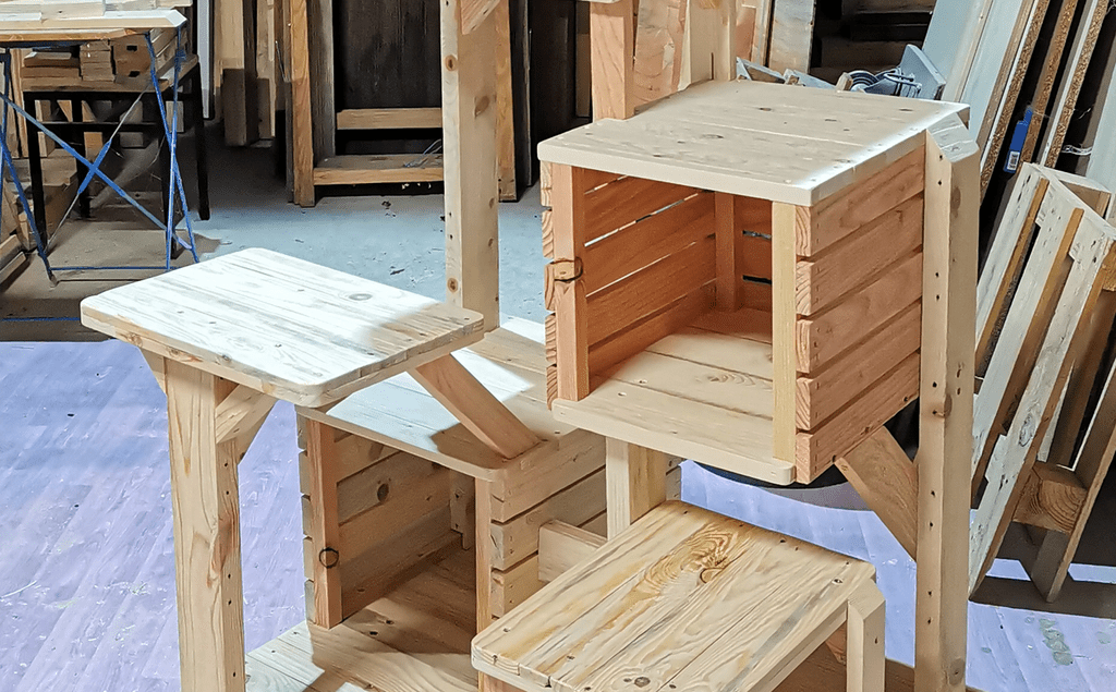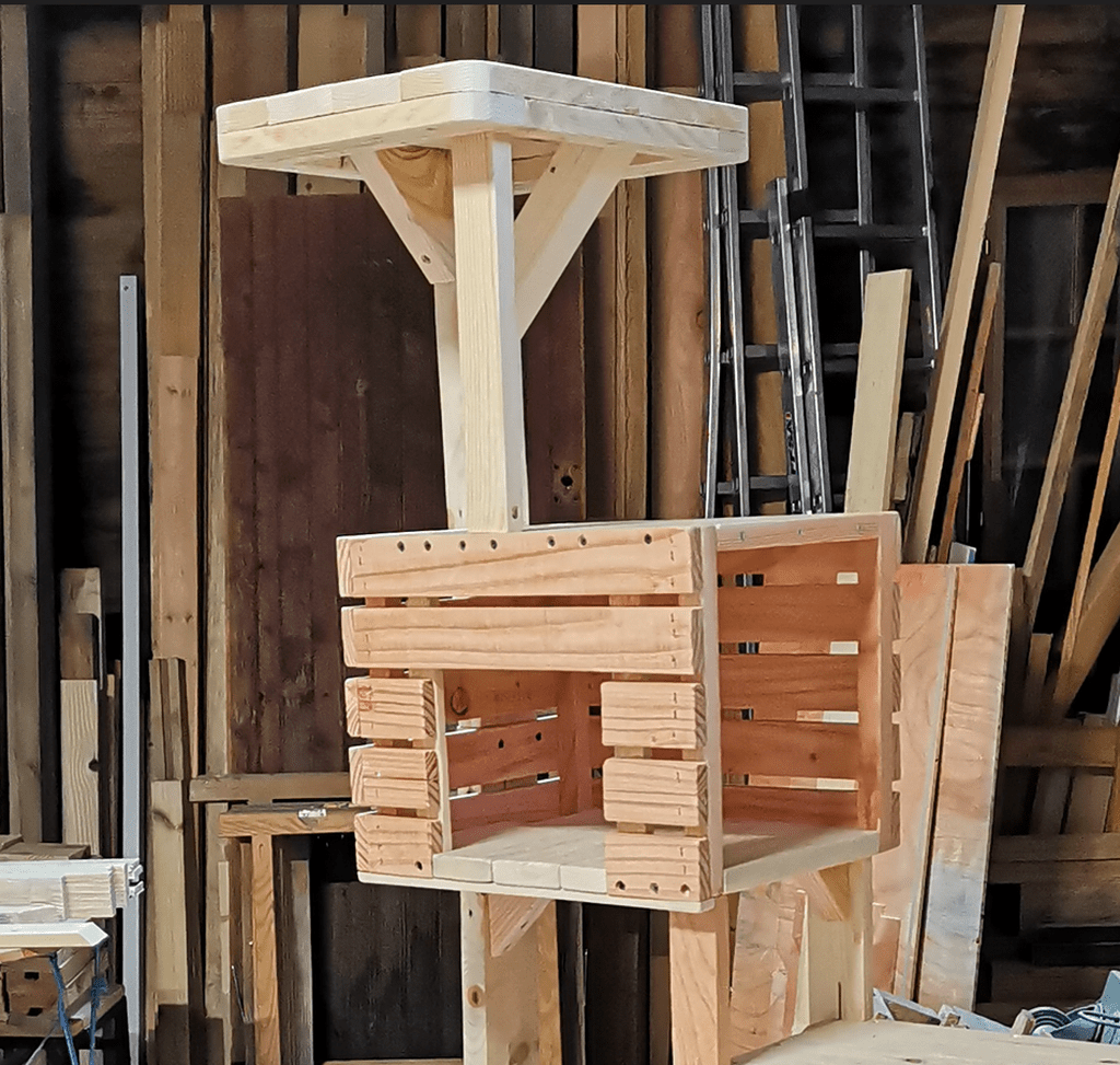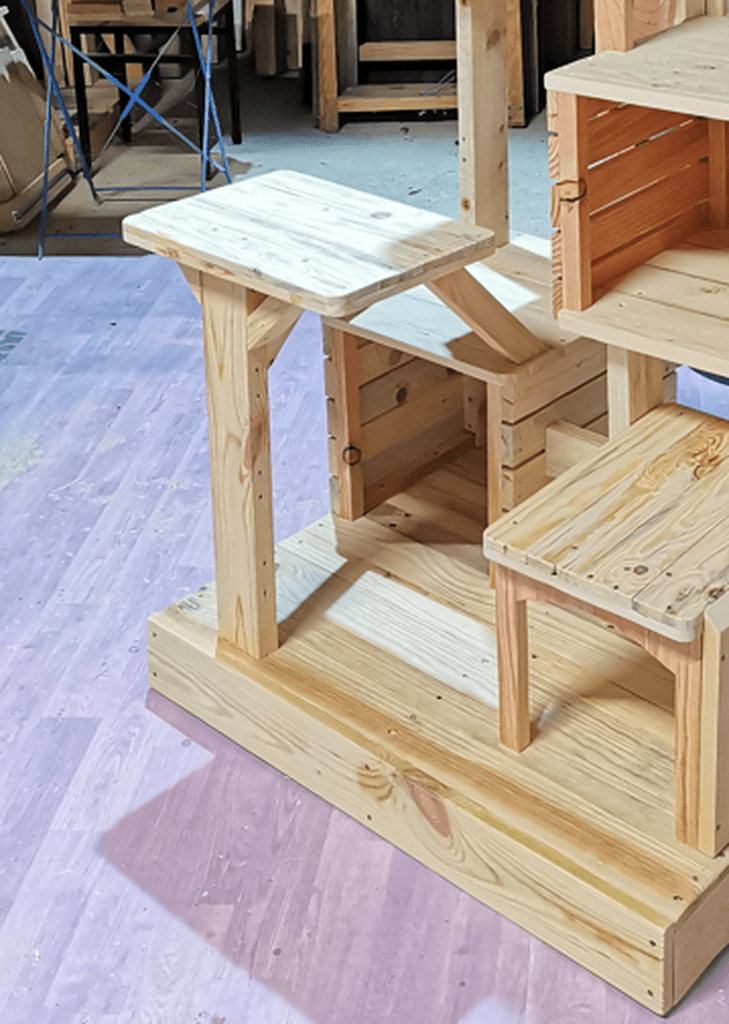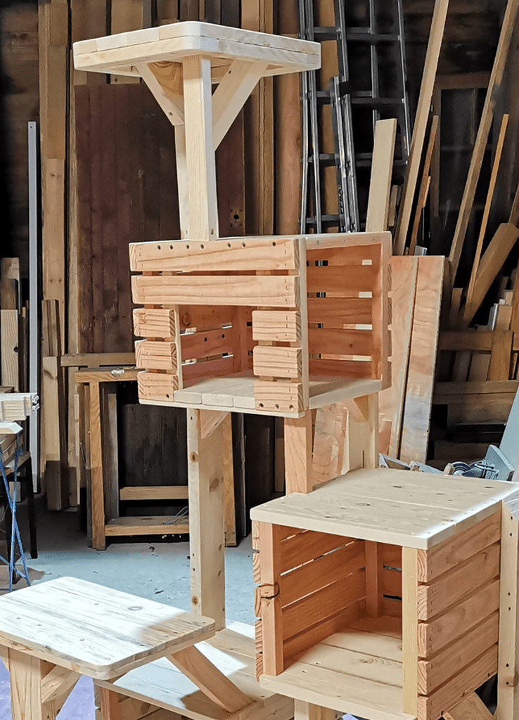 bonjour a tous le monde voici un arbre a chat en bois de palette avec 3 niches et 3 tablettes , il est assez balèze en hauteur et en poids aussi