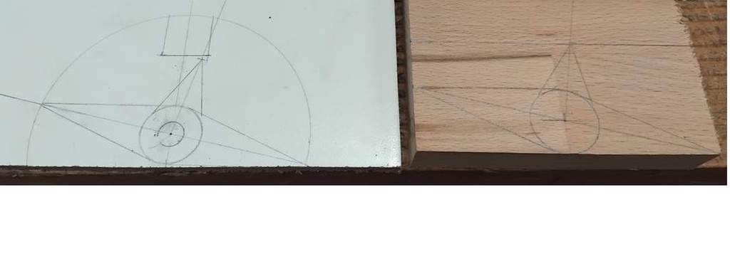 On place d'abord la première marche sur la came en position haute, et il suffit de tracer la hauteur de la marche suivante, qui est en position basse.