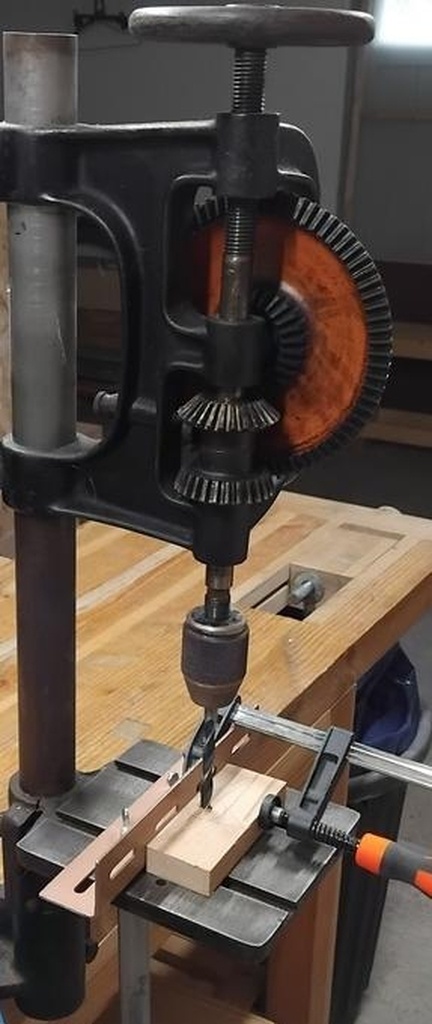 Axe foré sur la perceuse à colonne, pour être bien perpendiculaire.