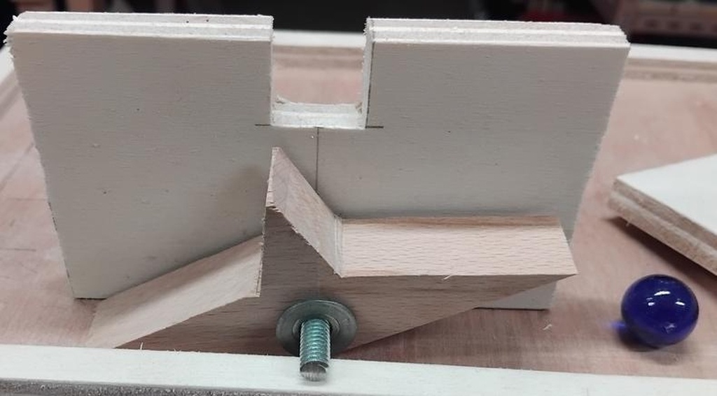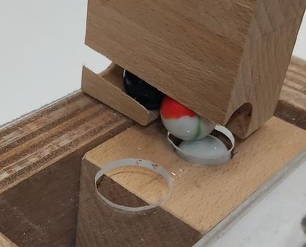- tailler un biseau faible du côté opposé, pour que la pièce ne se coince pas avec l'élément qui alimente en billes.