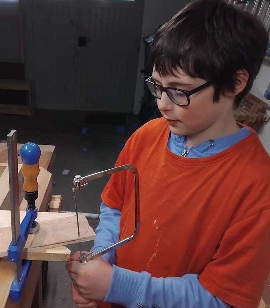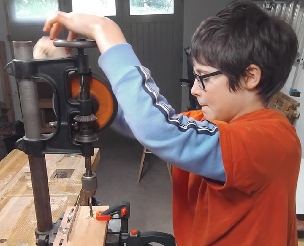 Tout d'abord avec l'aide de mon petit-fils, il a fallu percer les trous décentrés.