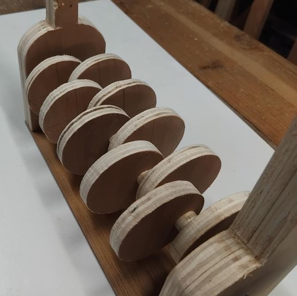 Il a fallu préparer 11 cercles (10 pour les cames et 1 pour la manivelle) dans du contreplaqué de 10 mm.