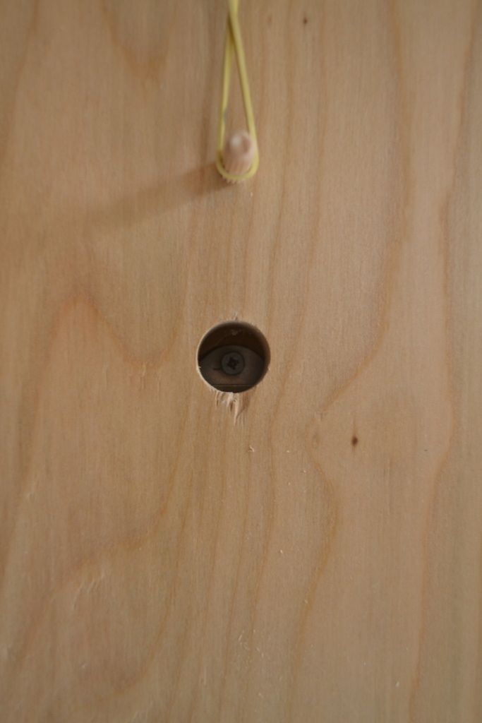 Il a fallu être un peu inventif pour pouvoir visser le mécanisme sur la roue et sur le support. J'ai rusé en perçant le montant en regard du passage des vis. Ainsi il m'a suffit d'aligner chaque trou du mécanisme pour passer la vis.