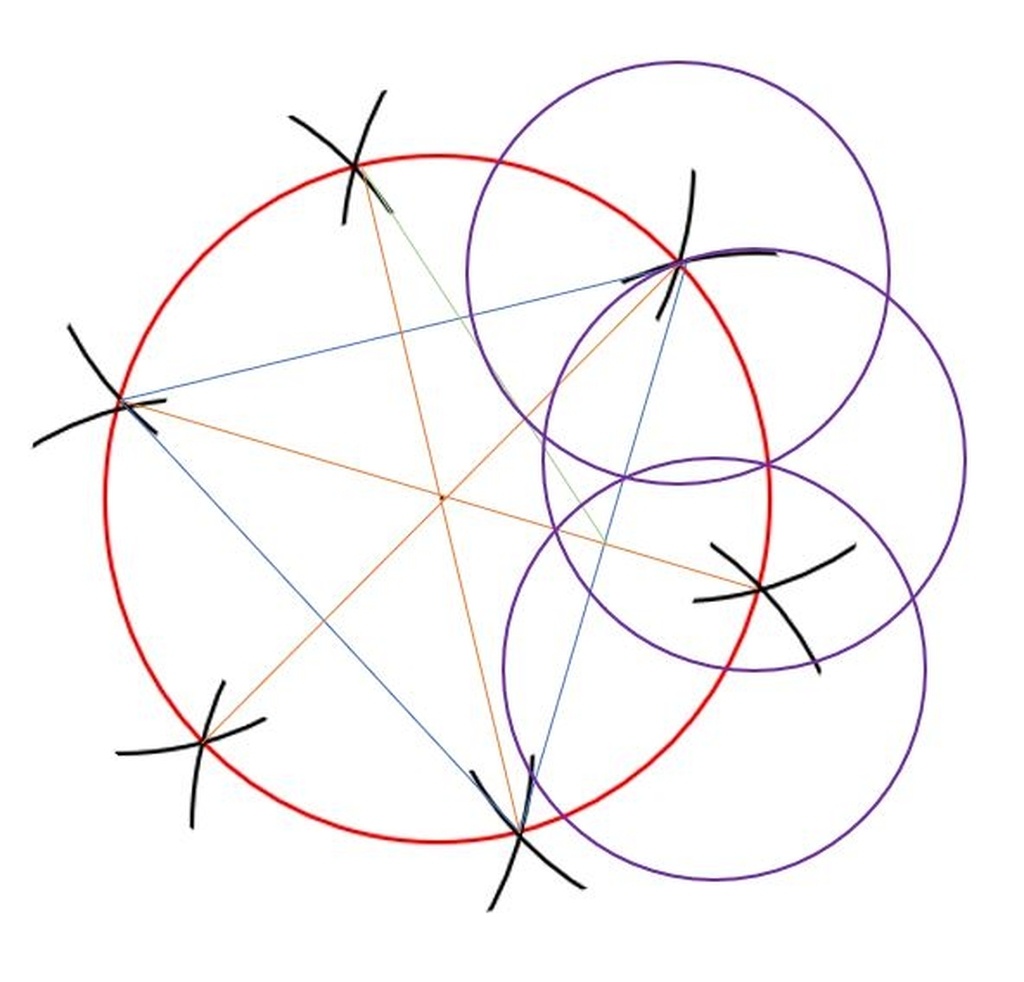 Pour les plus curieux, ou ceux qui seraient éventuellement mal à l'aise avec la géométrie, voici la méthode que j'ai utilisé pour diviser proprement la roue en 9 secteurs :