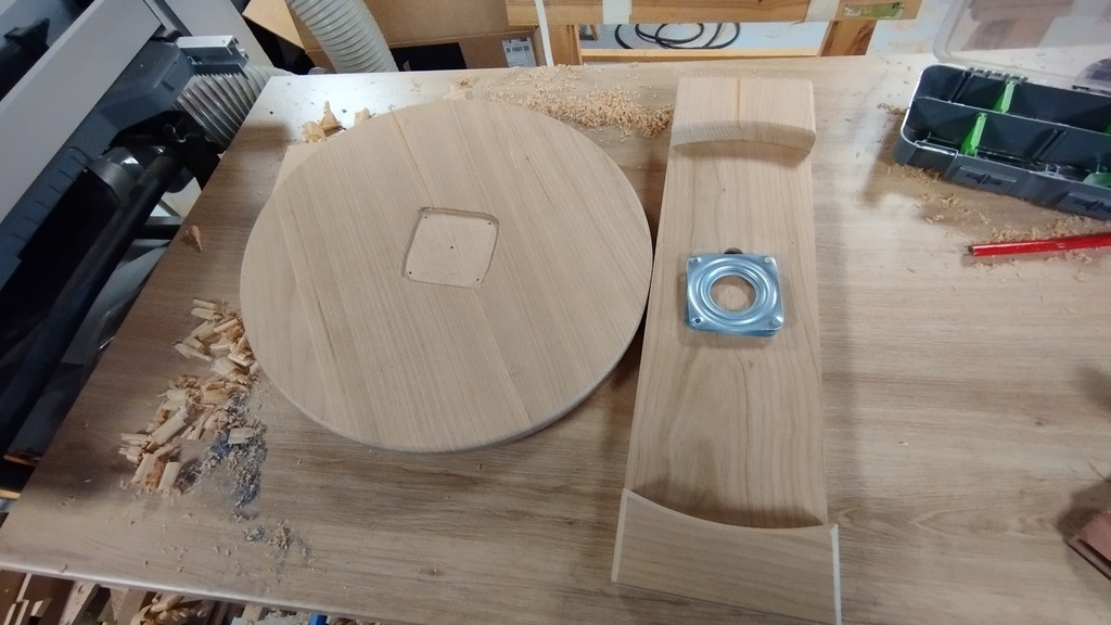 Le mécanisme est une plaque rotative à billes, initialement conçue pour des présentoirs ou des fauteuils tournants. J'ai commandé ces modèles en ligne. A la réception les billes sont graissées et la rotation est alors fortement freinée. Après dégraissage à l'acétone et WD40, puis application d'huile multi-fonction, c'est impeccable.