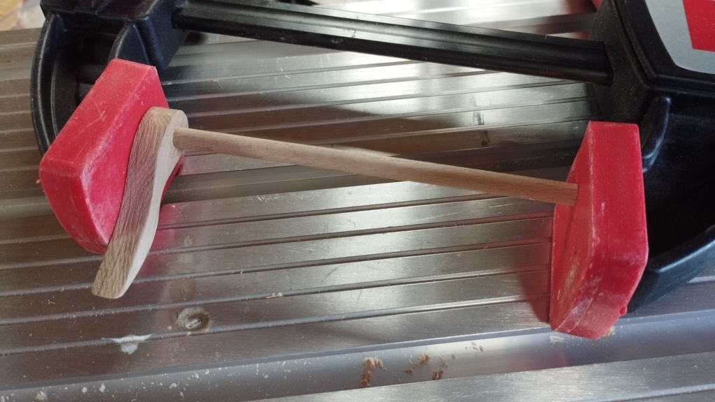 Le montage des différents éléments de soutien est fait par tourillons collés. Les seules vis utilisées sont celles du roulement à bille.