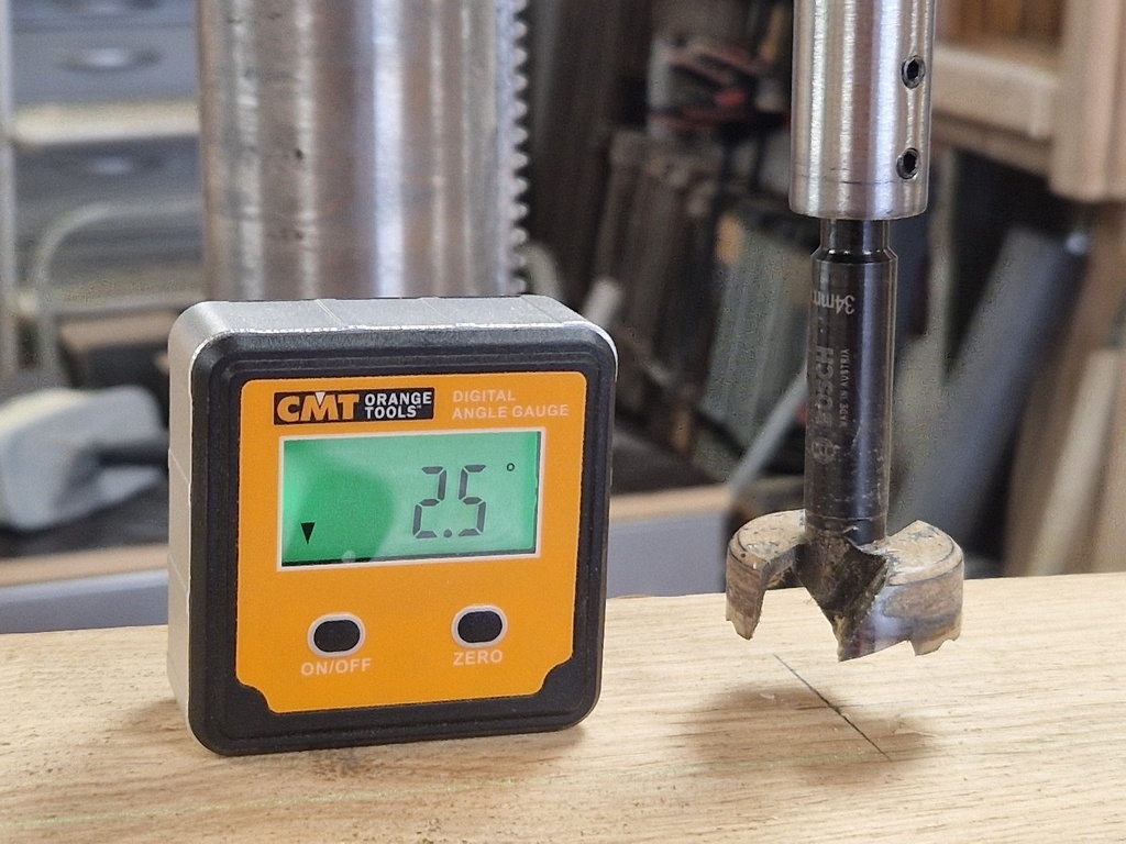 - Percement de tous les trous à la perceuse à colonne (D 34mm) et avec un angle de 2.5°