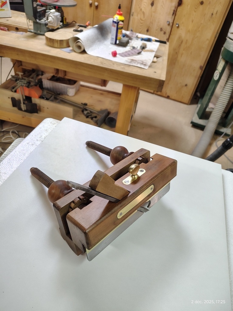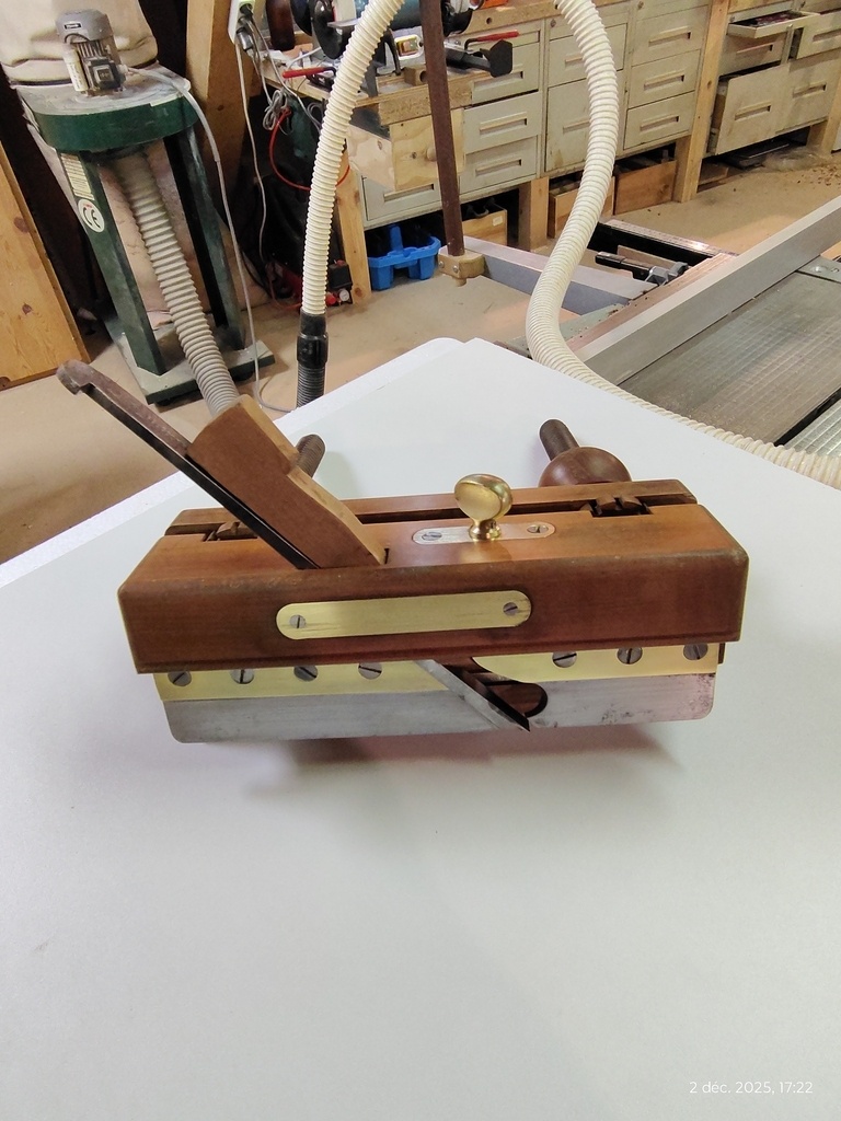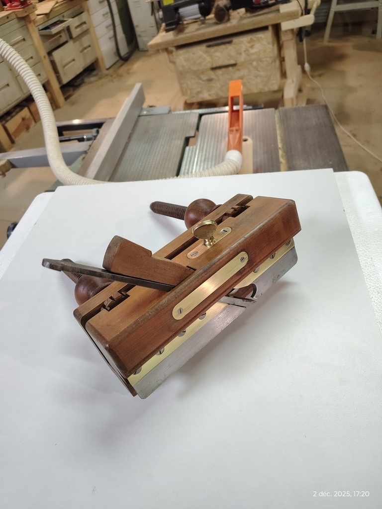 Juste pour la beauté de la chose. Je viens de restaurer un ancien rabot à Bouvet retrouvé dans un bric à brac de vieux outils de menuiserie offert par un ami.