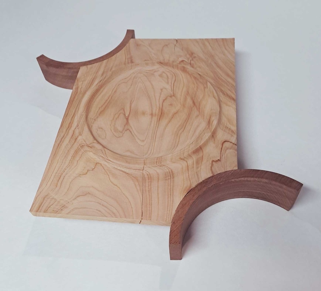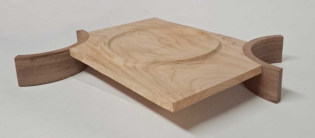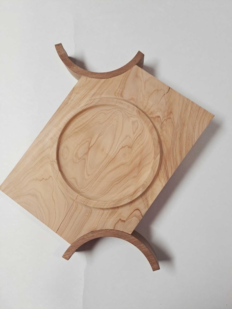 Un petit plateau en ronce de cypré avec des pieds en sapelli. 32x23 cm sans les pieds