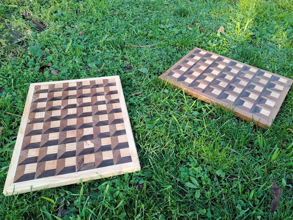 Les 2 se comportent différemment, car l'une n'a que du bois de bout au milieu, et une ceinture en bois de fil, l'autre alterne bois de bout/bois de fil.