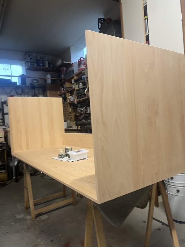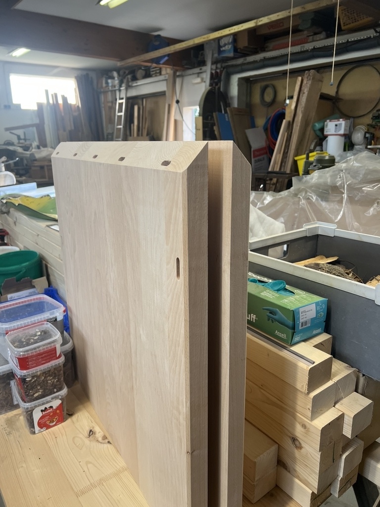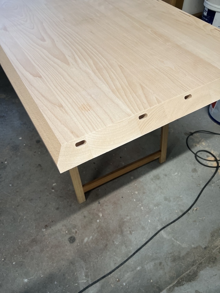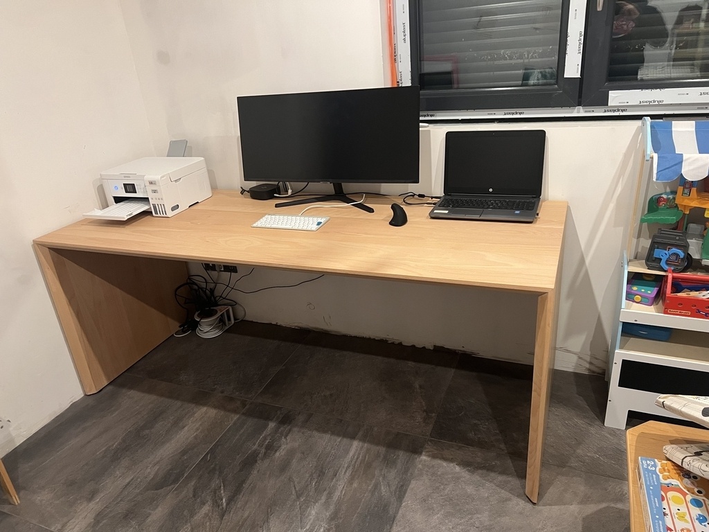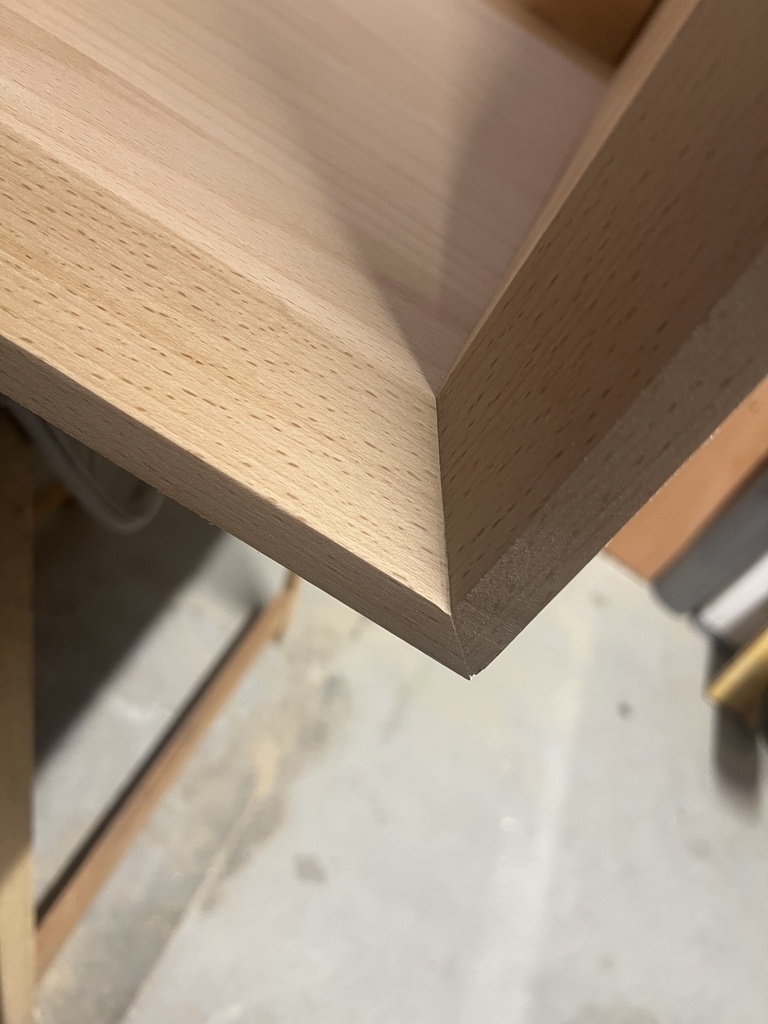 Bureau hêtre 42mm 2000x780x770 Bon il est loin être parfait quelle que petit écart au niveau de la coupe à 45 sur la longueur mais mais je suis assez content du résultat fait avec l’aide de mon voisin qui a une scie à format