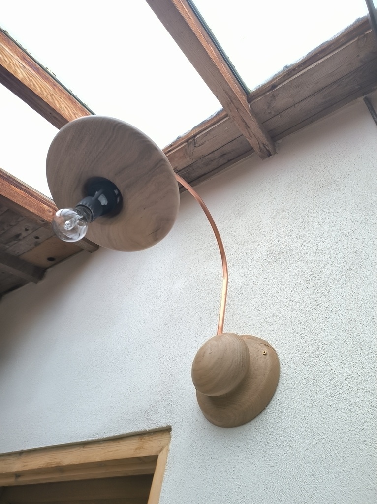 Sympa votre lampe. Il y a, je crois, une autre méthode pour cintrer: à la glace: on rempli le tuyau d'eau et on le passe au congélateur, pas besoin de bouchons dans ce cas