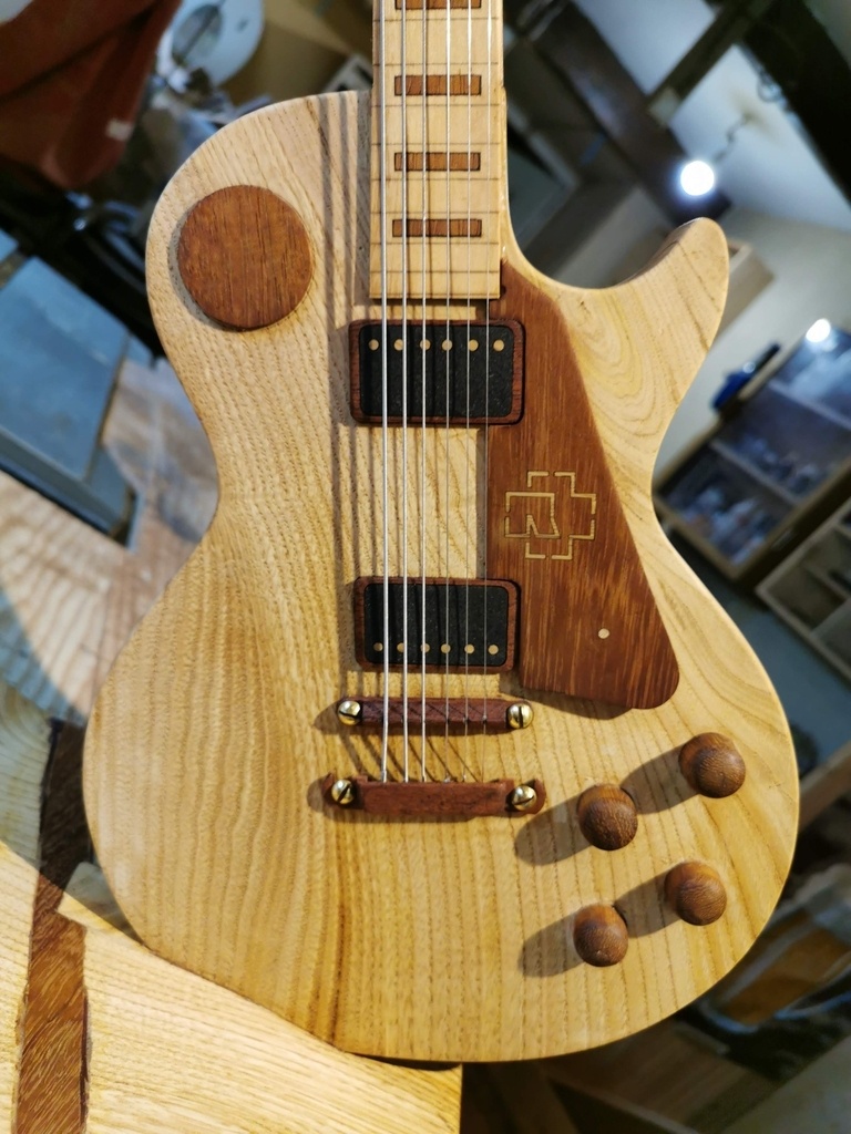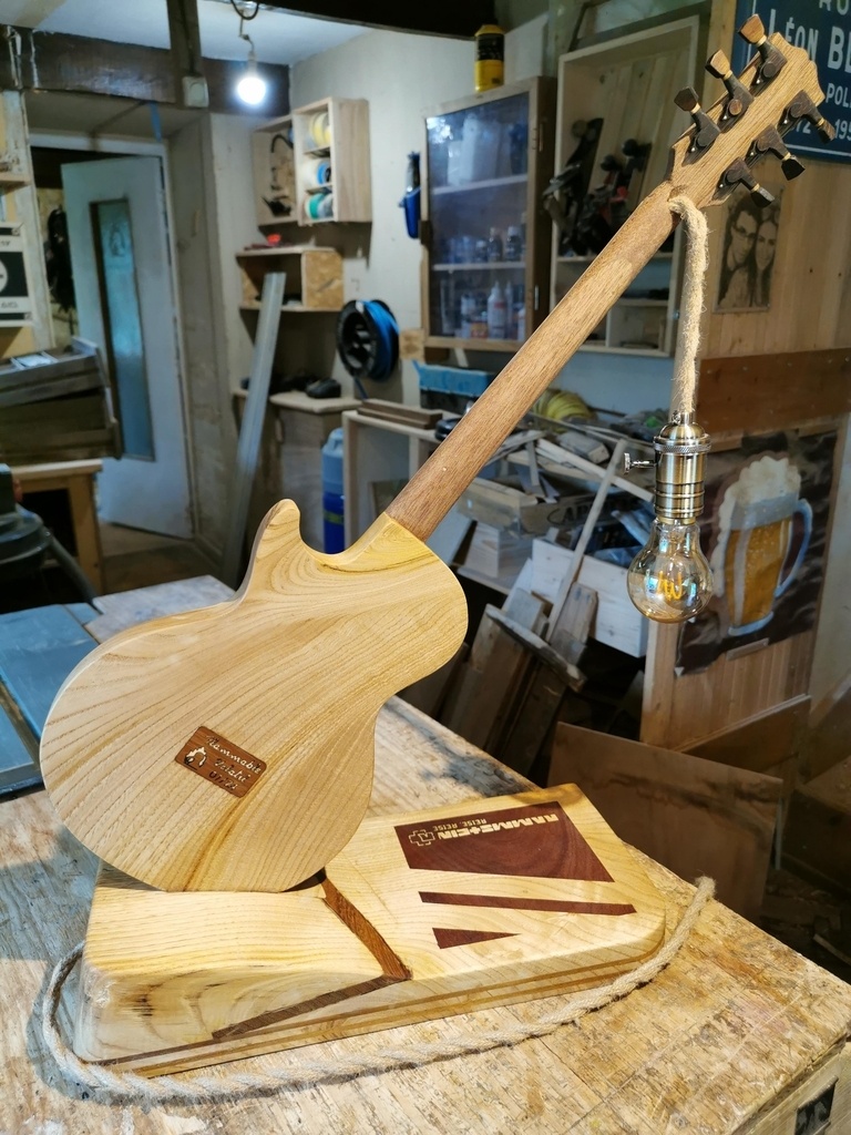 Une si belle guitare sur un joli socle et cette malheureuse ampoule qui pendouille à un bout de fil, c'est dommage