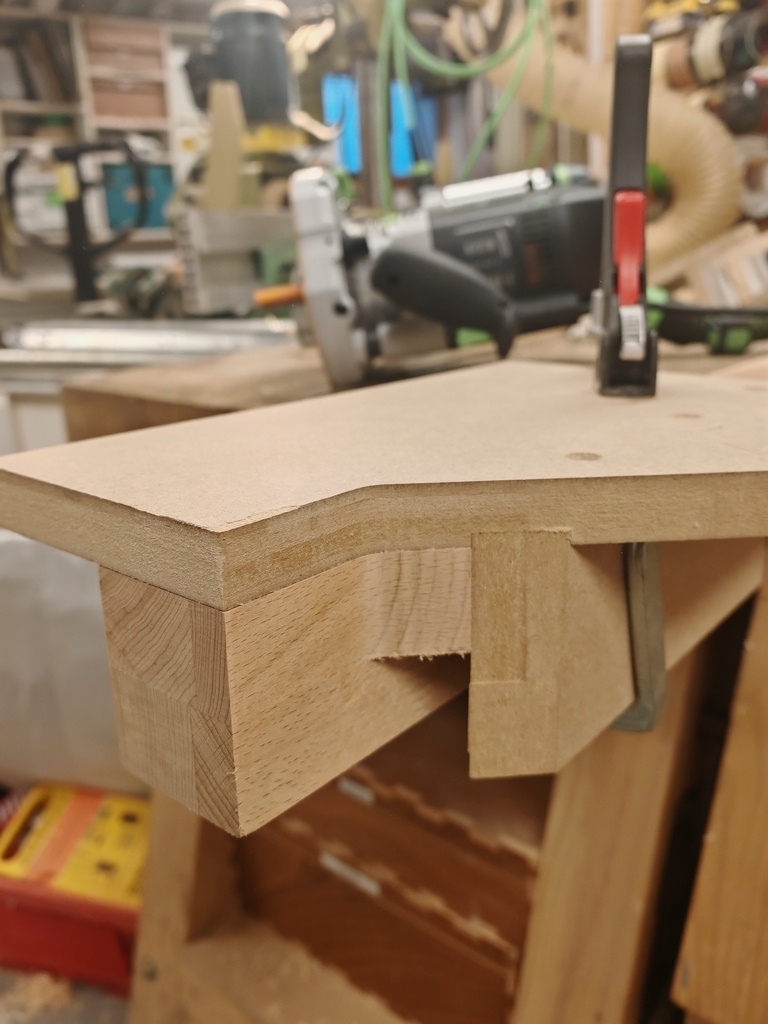 Merci ! C'est un établi fabriqué pour un ami. Je voulais pouvoir le fabriquer assez rapidement (4 journées approx) et limiter le coût en fourniture. Terminer les angles de cette façon m'a simplement permit d'aller plus vite, il n'y a pas d'intérêt à l'usage.