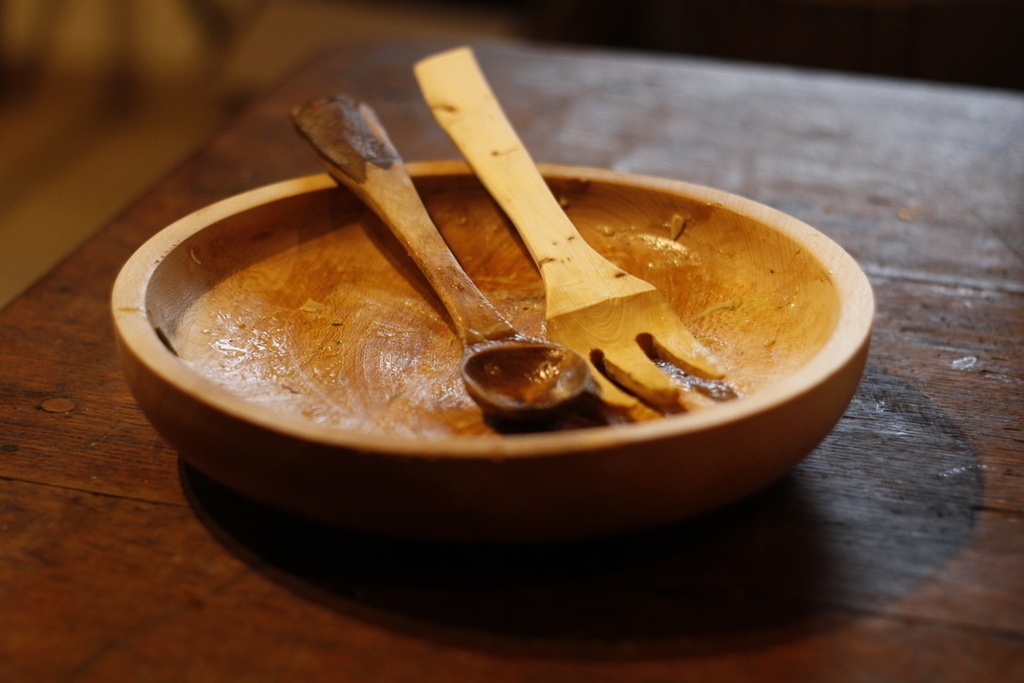 Je trouvais mes assiette classiques en porcelaine trop petite et qu'elles ne contenaient pas assez de bouffe quand je me servais, et donc j'ai décidé de me fabriquer une assiette unique, en bois.
