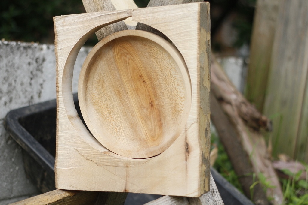 je suis donc parti d'un bout de paltane que j'ai débité à la tronçonneuse et que j'ai laissé sécher un morceau.
