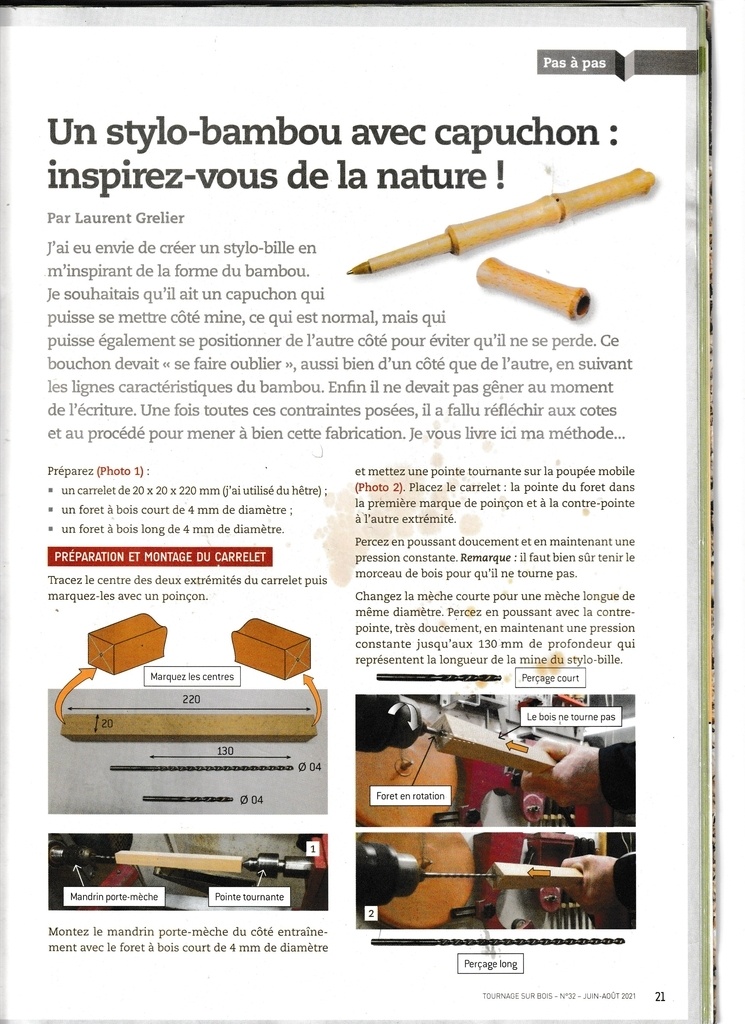 J'avais été conquis par un vieil article de la revue Tournage sur bois qui expliquait comment fabriquer des stylos bille en utilisant des recharges de pointe bic. Pas besoin de s'équiper de matériel spécial.