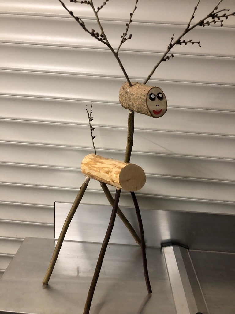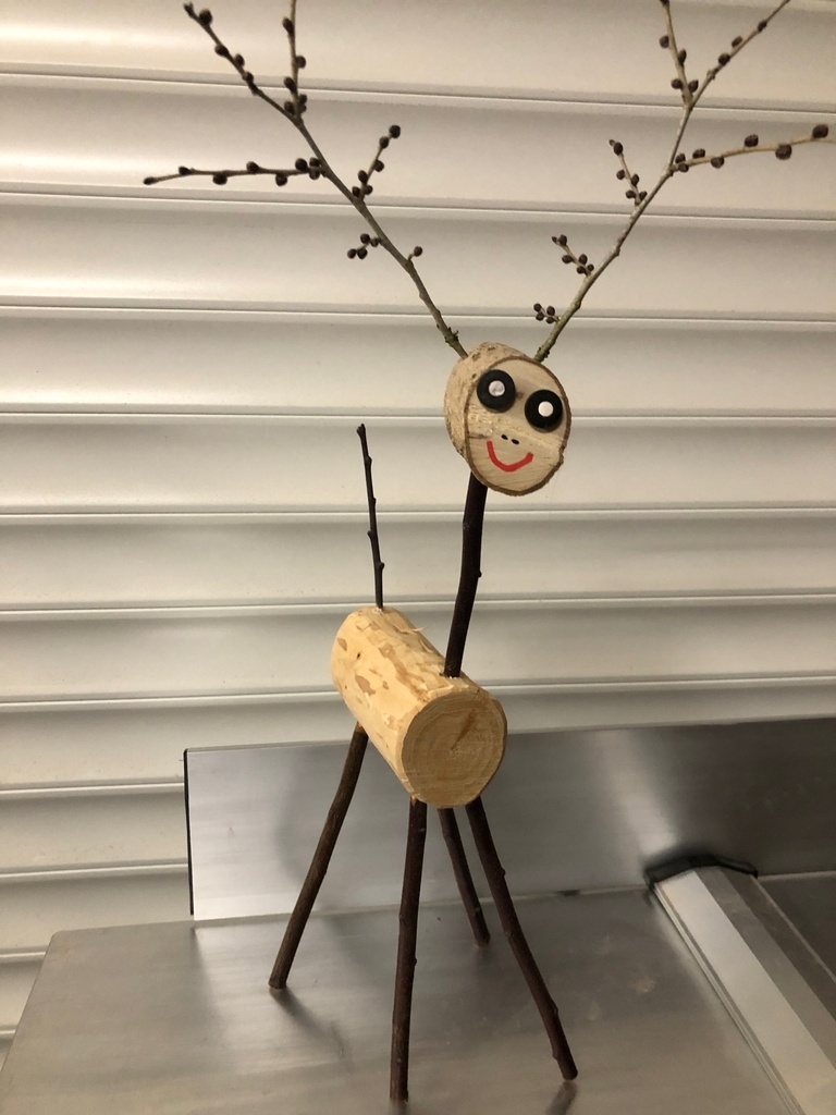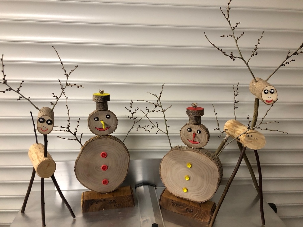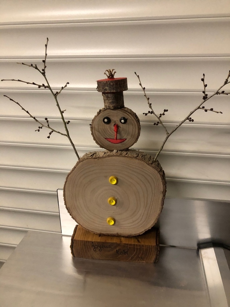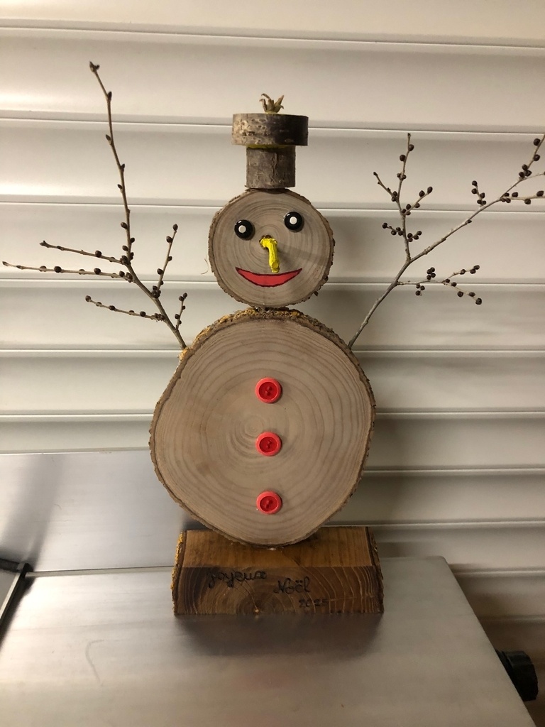 Avec ce début Décembre 2025 très pluvieux, on s'occupe à l'intérieur Objets réalisés avec des chutes de bois et des restes de taillesA placer en décors auprès du sapin