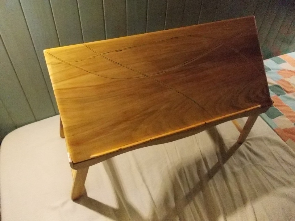 Les pieds peuvent se rabattre, et le plateau s'incliner selon différents angles
