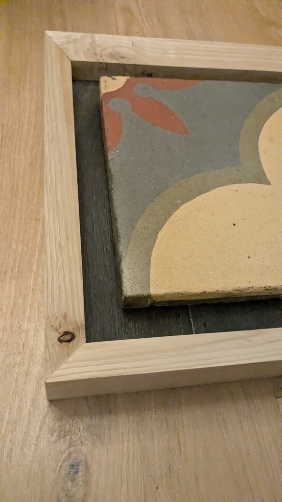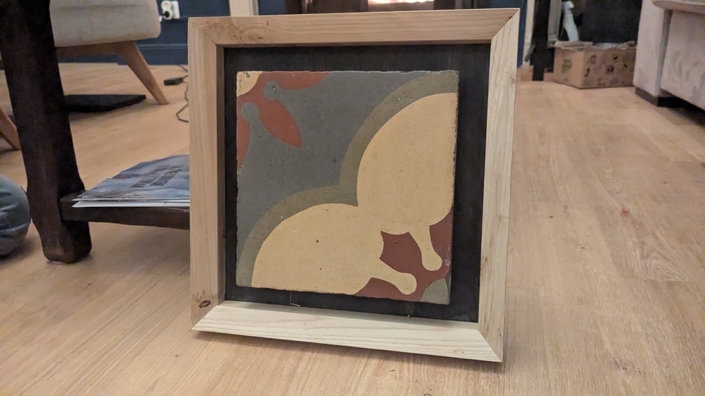 J'ai pu en récupérer un en bon état... et en faire un tableau qu'ils pourront accrocher dans leur maison rénovée. Un bout d'histoire de leur maison en somme...
