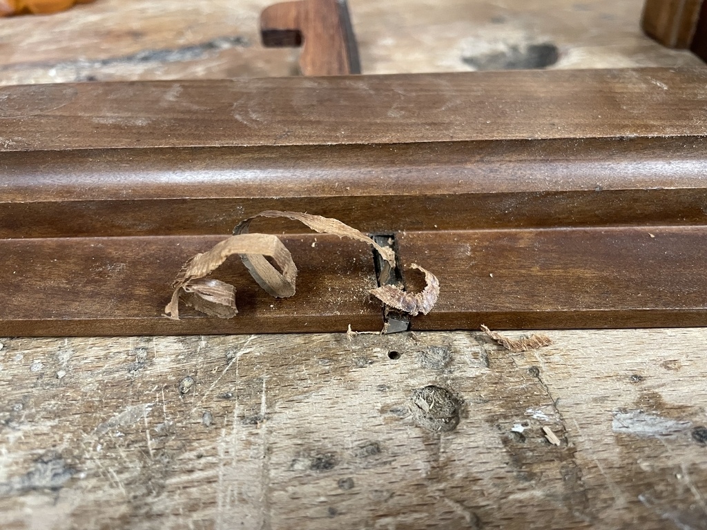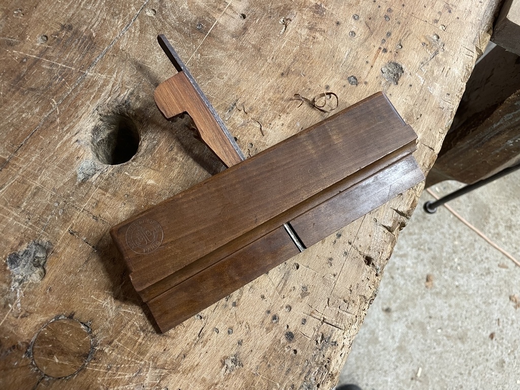Pour la petite histoire, j'avais un guillaume de côté (venu d'un magnifique lot de bouvets en cormier en tout genre que j'ai eu la chance de récupérer) dont j'ignorais le nom, l'usage, et qui avait perdu son coin.
