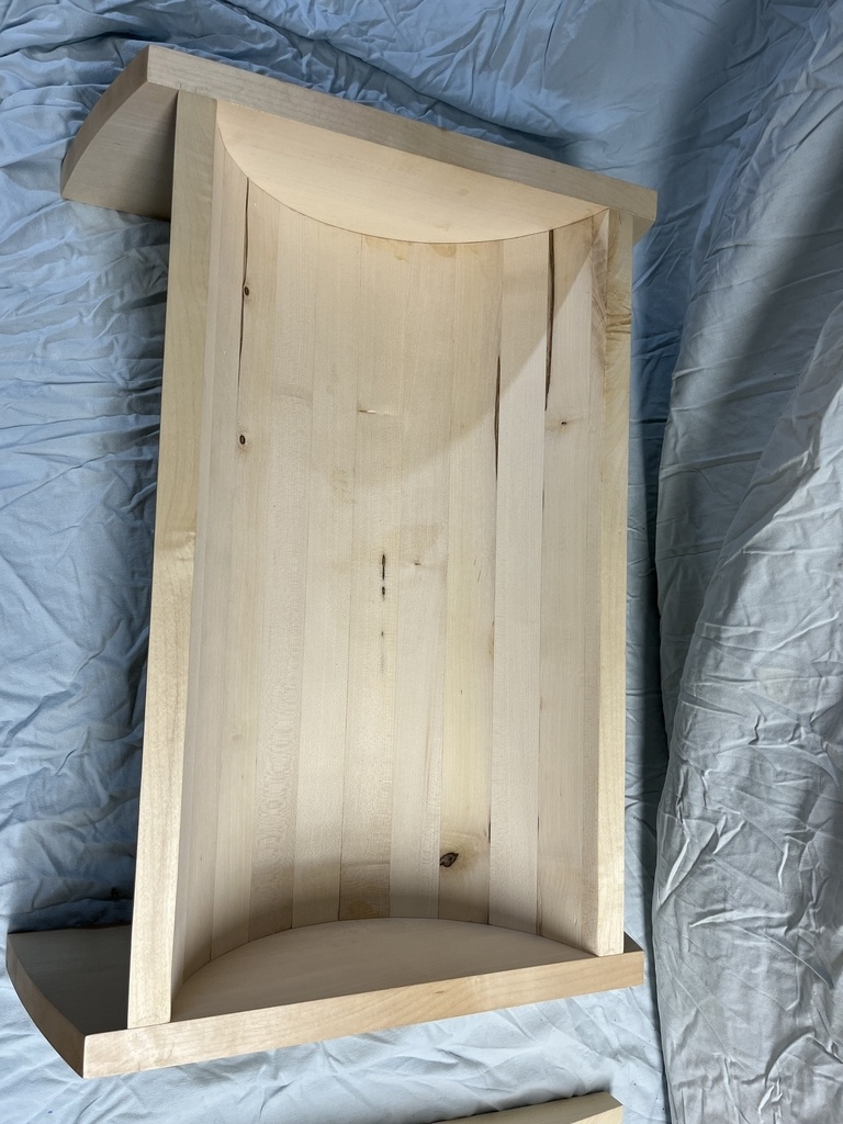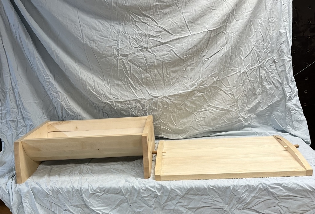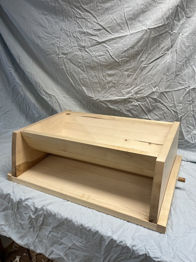 Hello tout le monde. Je vous présente ma dernier fabrication: un pétrin d’une capacité de 3 kg de farine. Il est réalisé en érable pour la cuve et en frêne pour le couvercle qui peut également servir de table à pétrir. La plus grosse difficulté était la réalisation de la coupe d’angle des tasseaux du fût. Sinon je le suis bien amusé sur ce projet. La finition est effectuée avec de l’huile osmo pour l’extérieur et de l’huile de lin pour l’intérieur de la cuve.