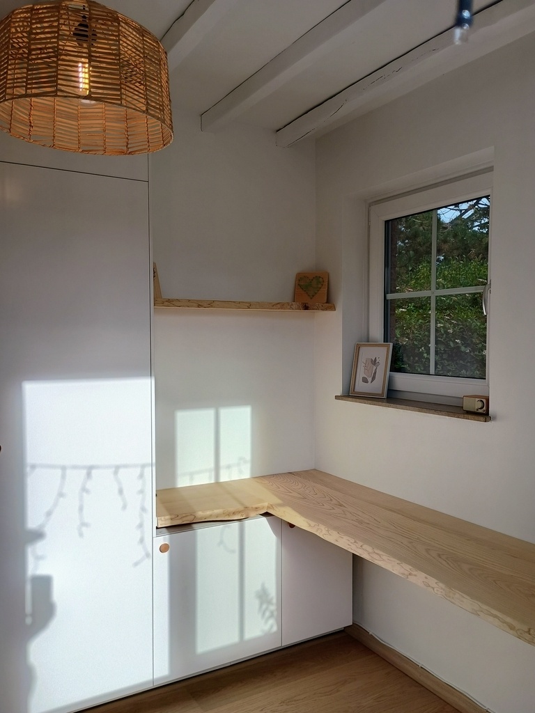 Petit bureau totalement réaménagé.La parti intéressante étant le bureau en lui même, en frêne massif.