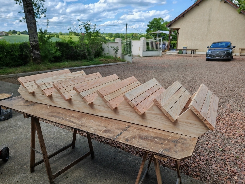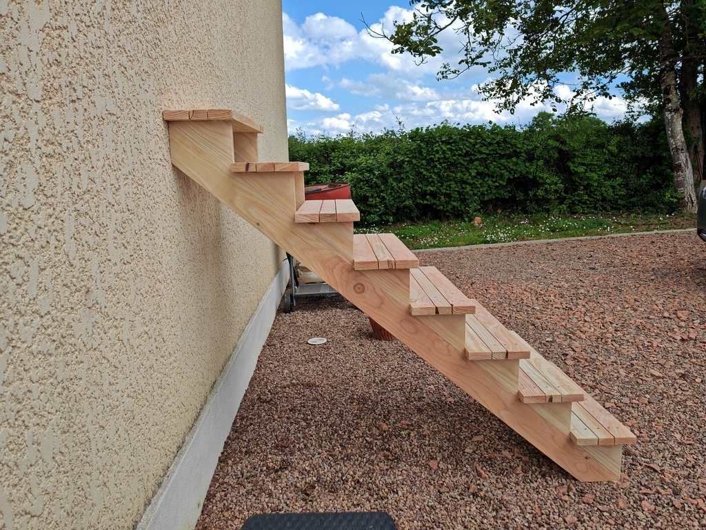 bonjour a tous voici un escalier en bois pour piscine hors sol de 125 de haut et 150 de profondeur ou recul , une personne m'avais demander de lui faire un escalier et lui il s'occuperai de faire les fixation pour le fixé a la piscine ainsi que la protection , le bois est du douglas en 27 mm .