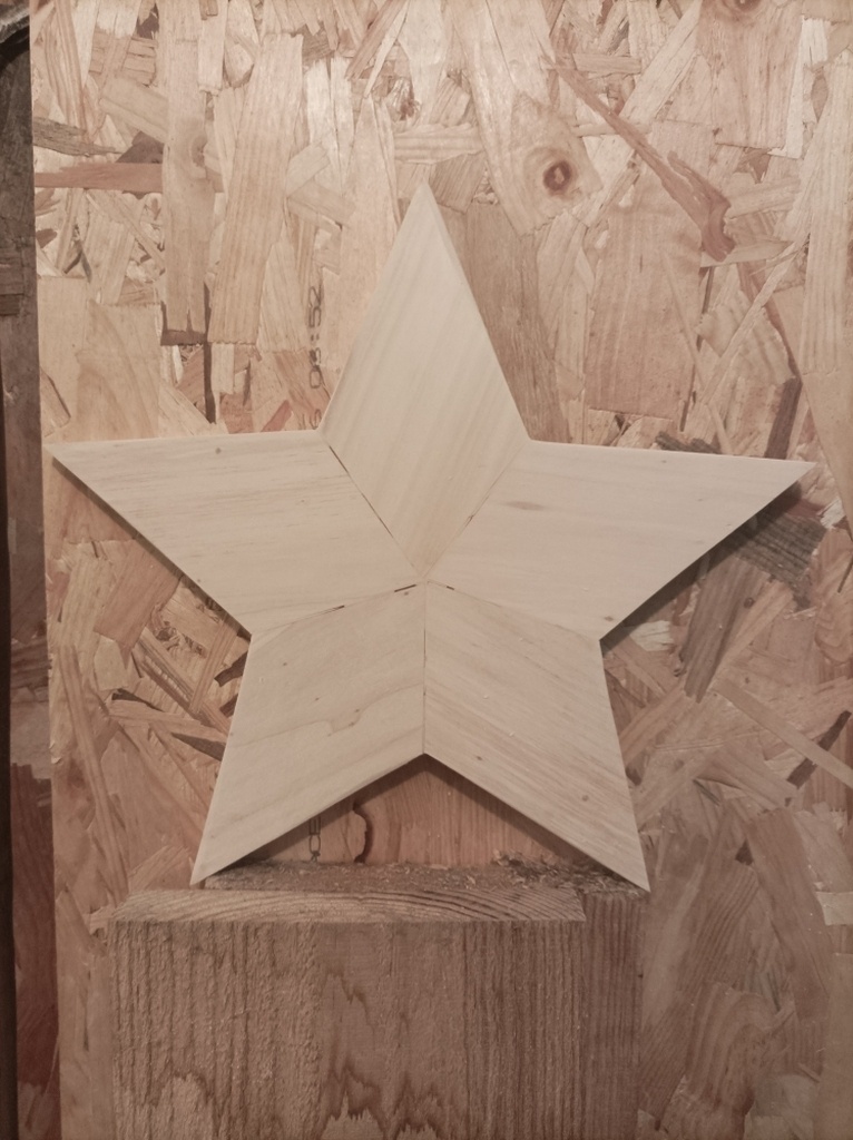 Un grand classique des fêtes, l'étoile à 5 branches. J'avais des chutes de peuplier, et je cherchais à tester un peu la précision de ma scie à onglet. Il y a des dizaines de tutos qui expliquent comment faire, mais sans trop expliquer les calculs d'angles. J'ai fini par me faire un petit tableau excel qui va bien. Pour la précision par contre, ce n'est pas évident du tout. J'ai fini avec quelques retouches à la scie à dos et un peu de pâte à bois.