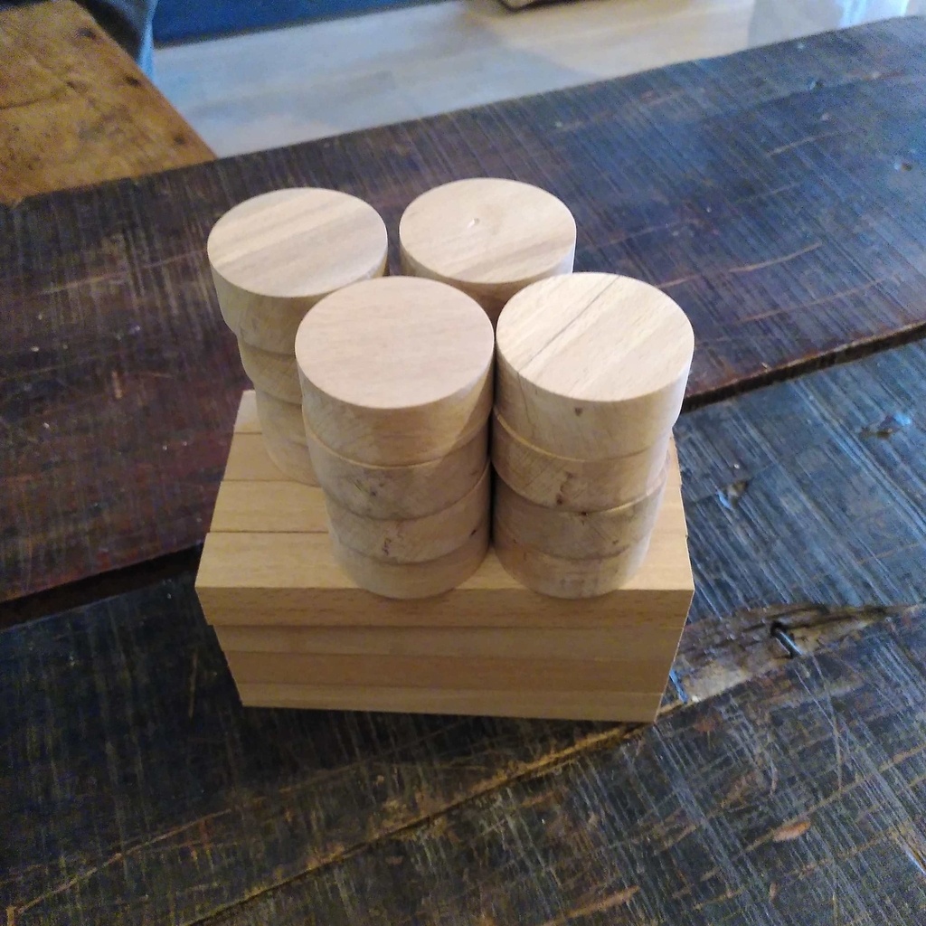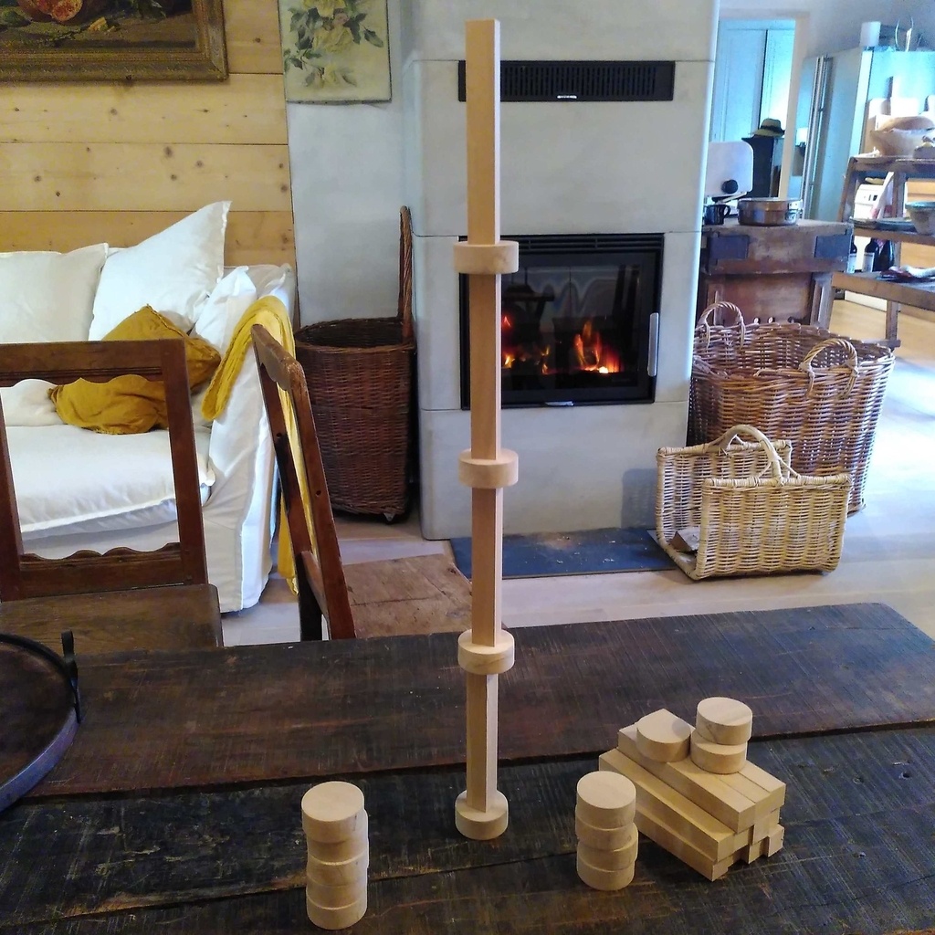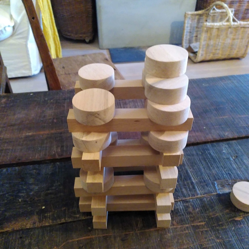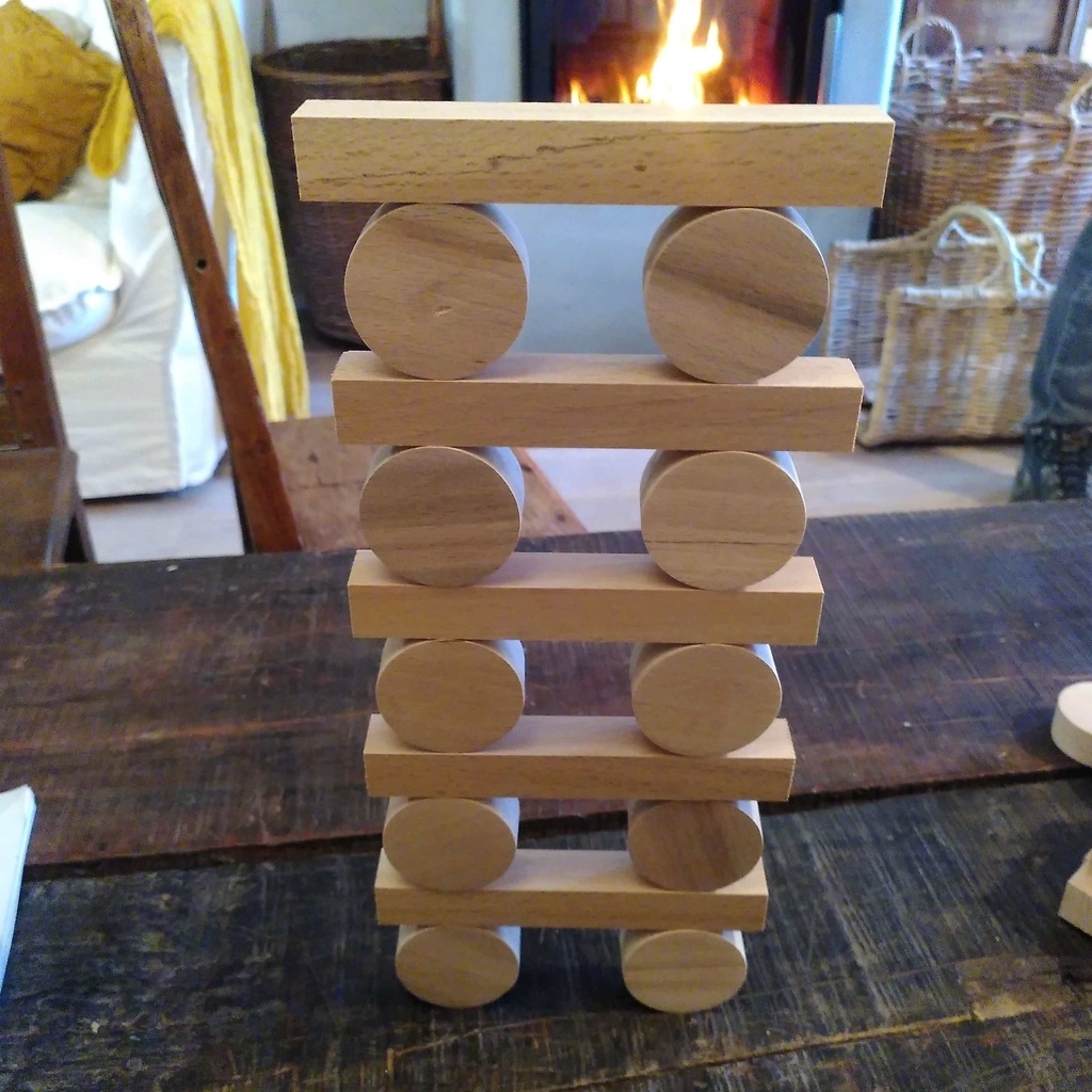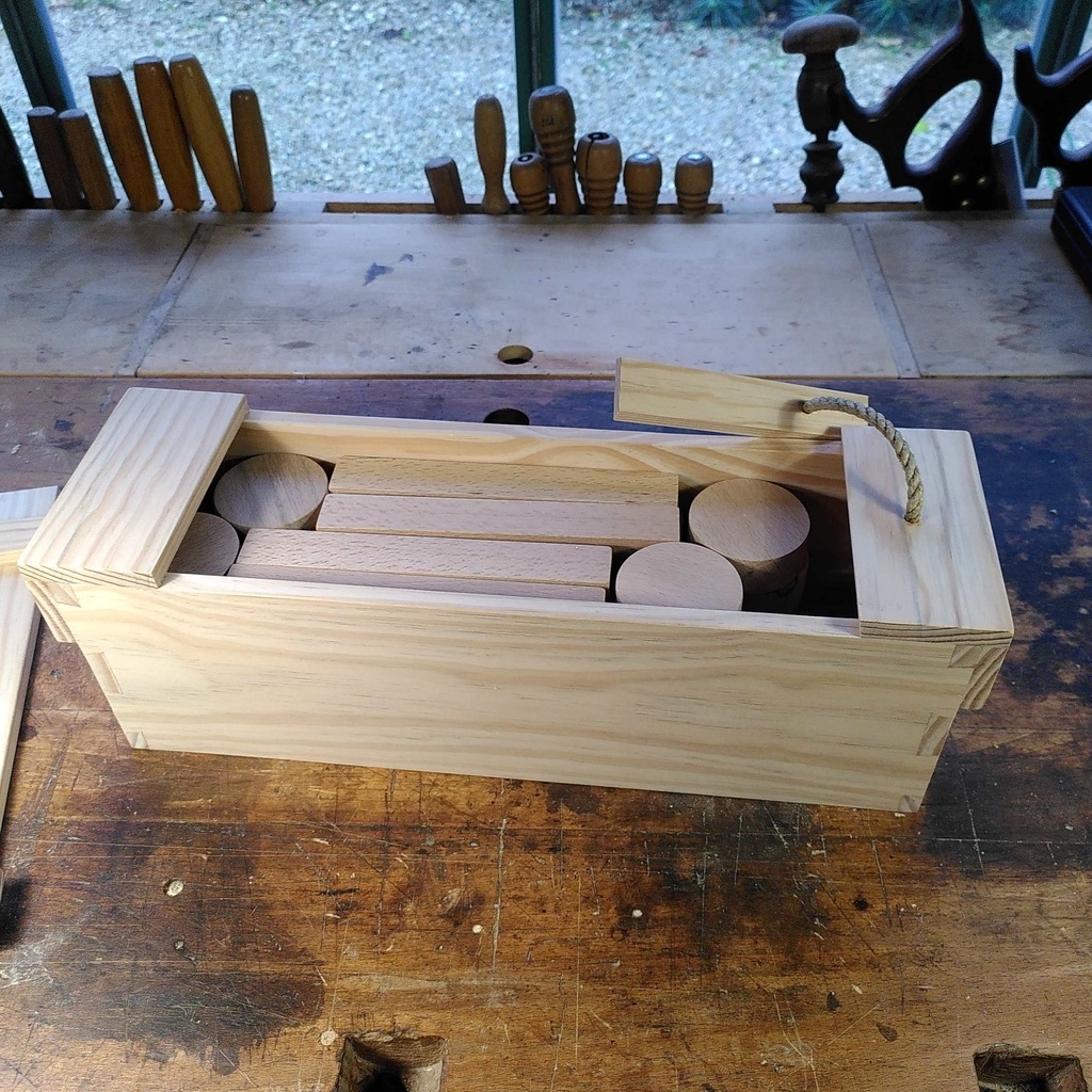 J'espère que cela rappelera des souvenirs à la maman, ma fille, elle avait eu droit à une caisse de cubes et autres formes en chutes de frêne, puis des similis koplos en cèdre...